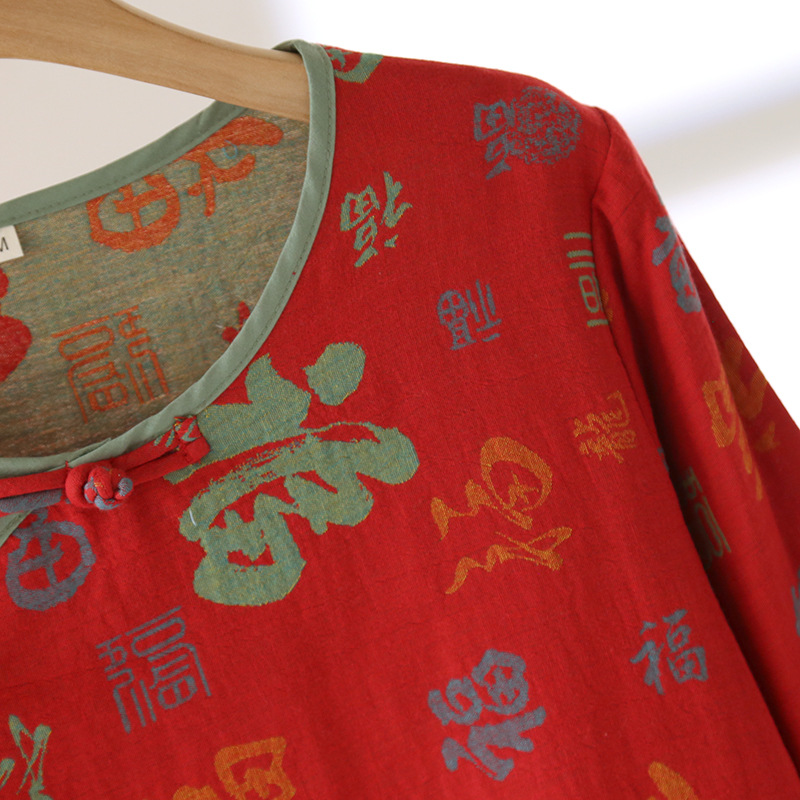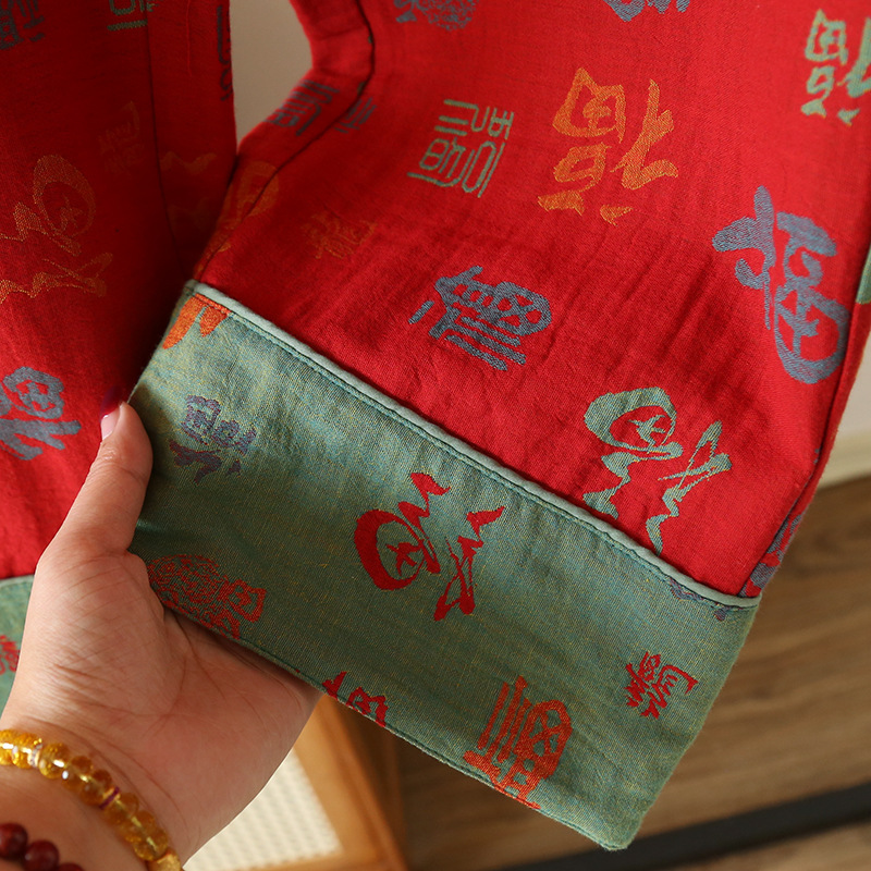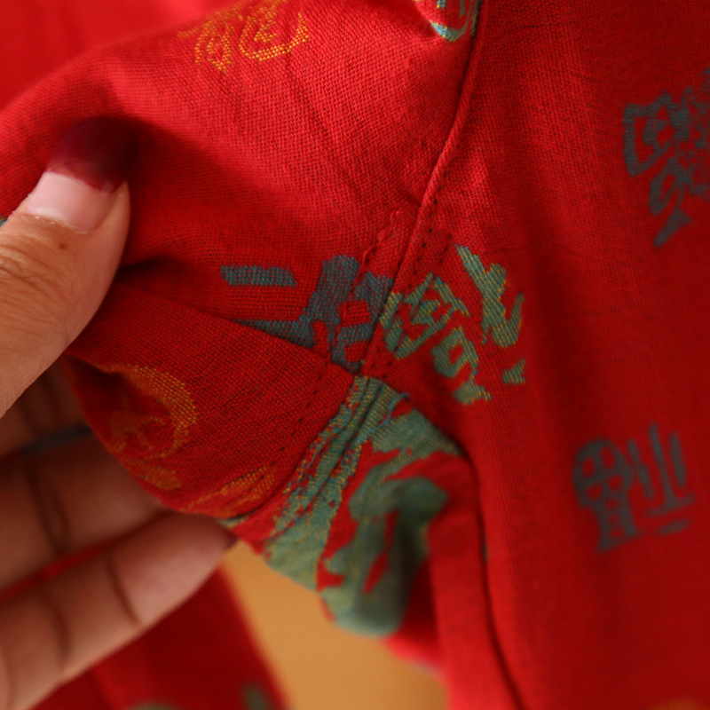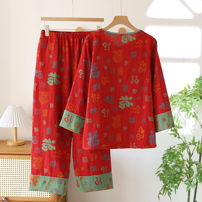 봄과 가을 여성용 순면 잠옷 붉은색 축제 원사 염색 긴팔 바지 루즈한 동물의 해 홈웨어 세트스토어 가기