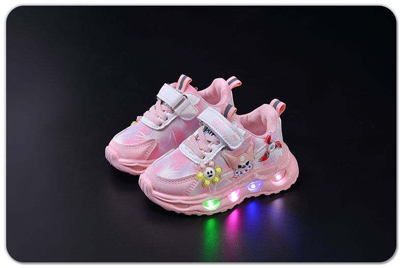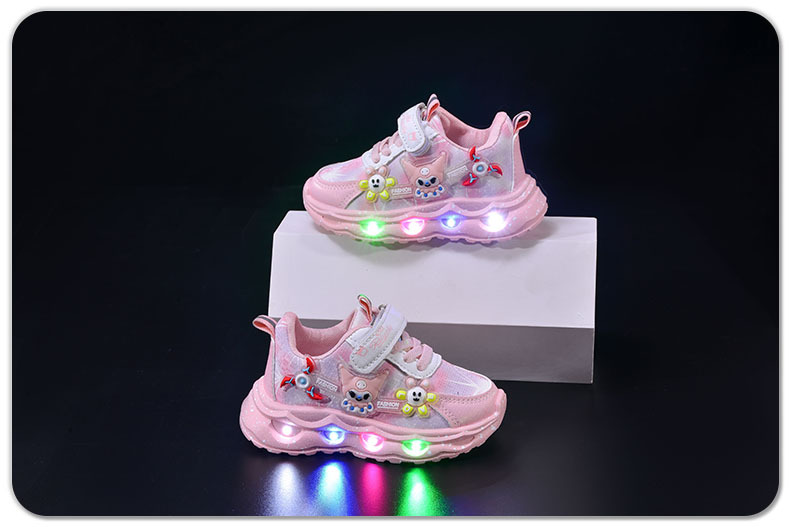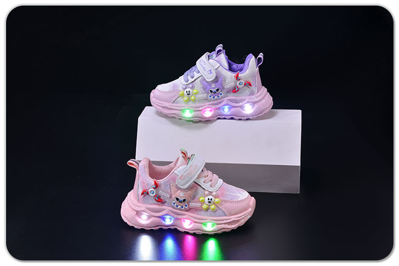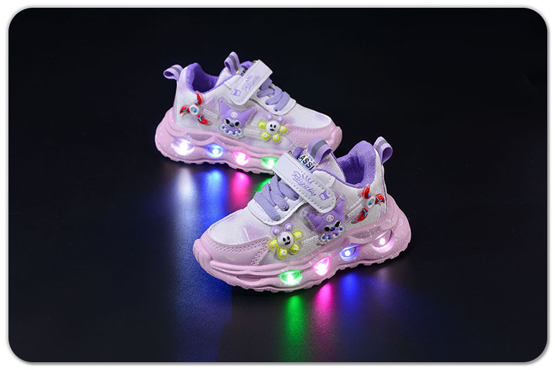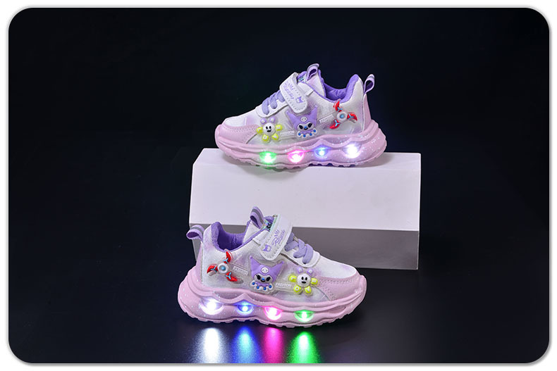 2024 봄 새로운 만화 Kuromi 어린이 가죽 조명 운동화 소녀 공주 신발 어린이 신발 1-6