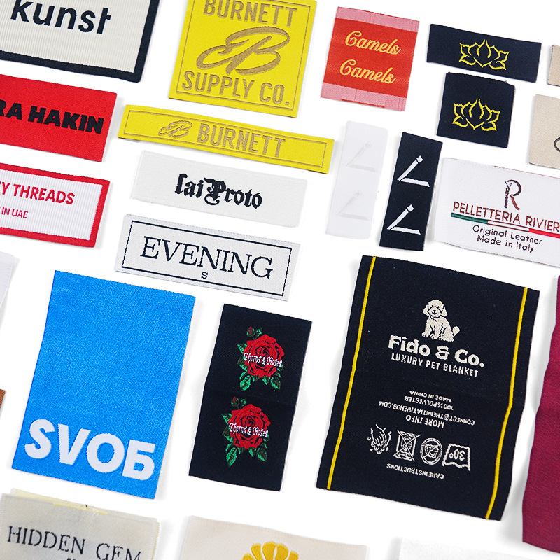 의류 액세서리 제조업체 도매 가슴 라벨, 어깨 라벨, 칼라 라벨, 천 라벨, 전체 높이의 고밀도 실로 제작된 부드러운 직조 라벨 및 직조 라벨