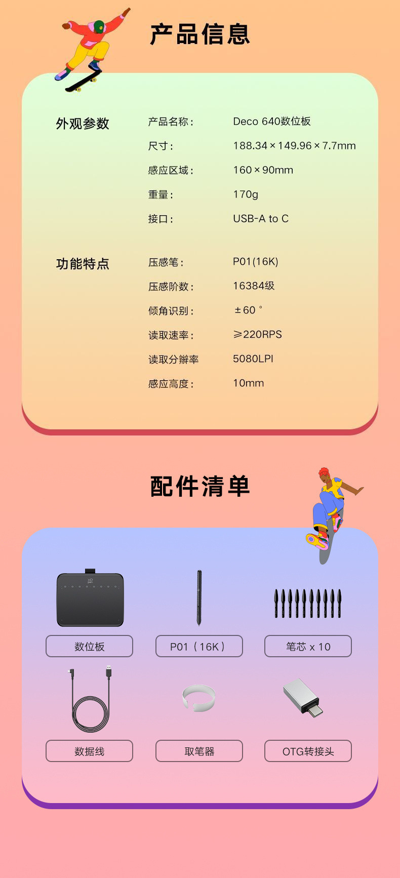 XPPen 필기 보드 Deco 640 손으로 그린 보드 그림 그리기 컴퓨터는 학생을위한 휴대 전화 온라인 수업 디지털 태블릿에 연결할 수 있습니다