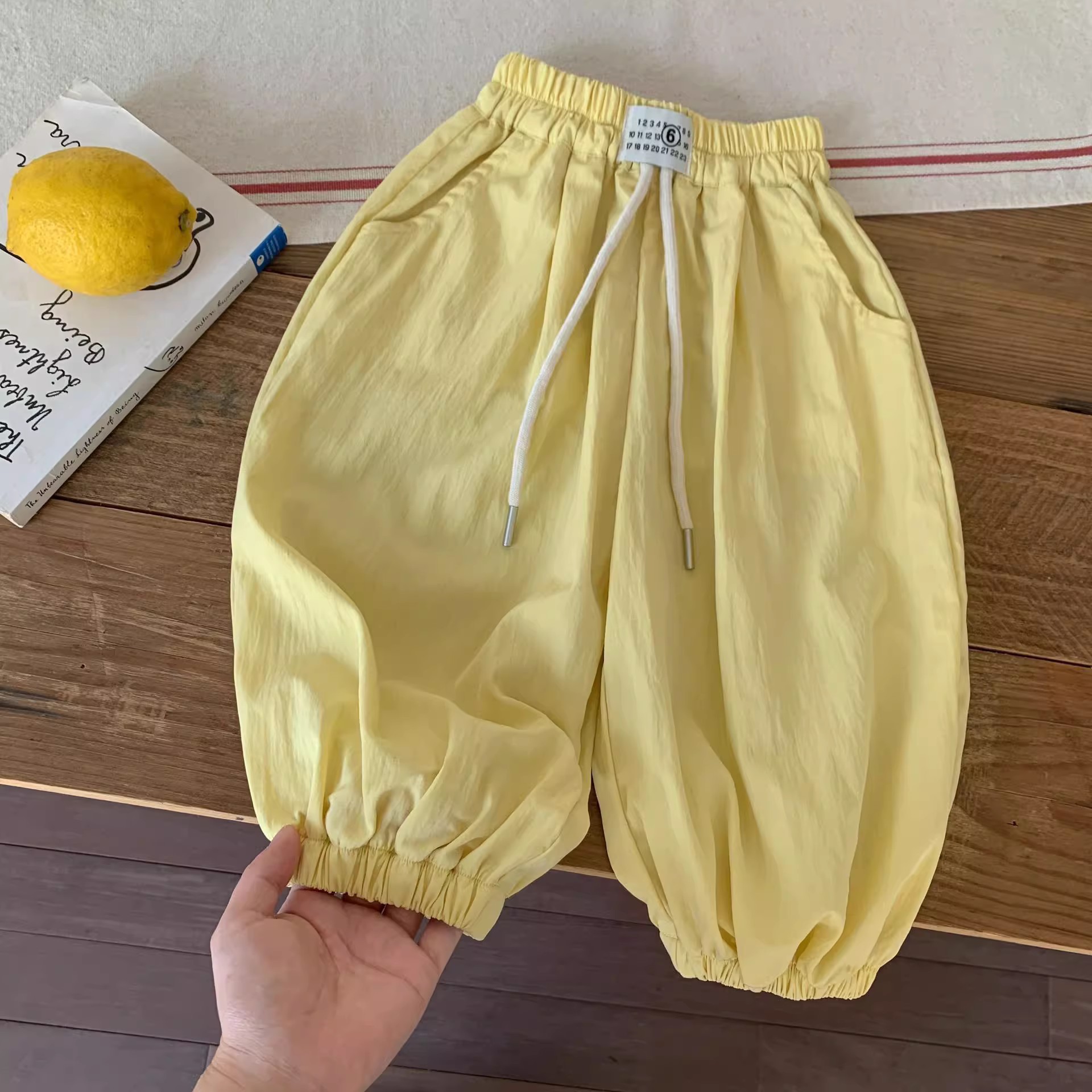어린이 얇은 모기 방지 바지 2025 여름 새로운 소년 바지 부드러운 아기 단색 블루머 여성 도매