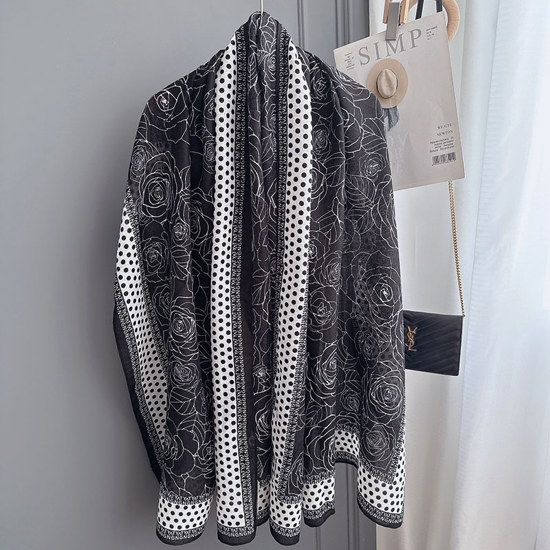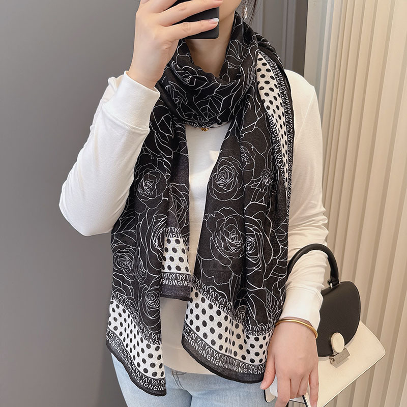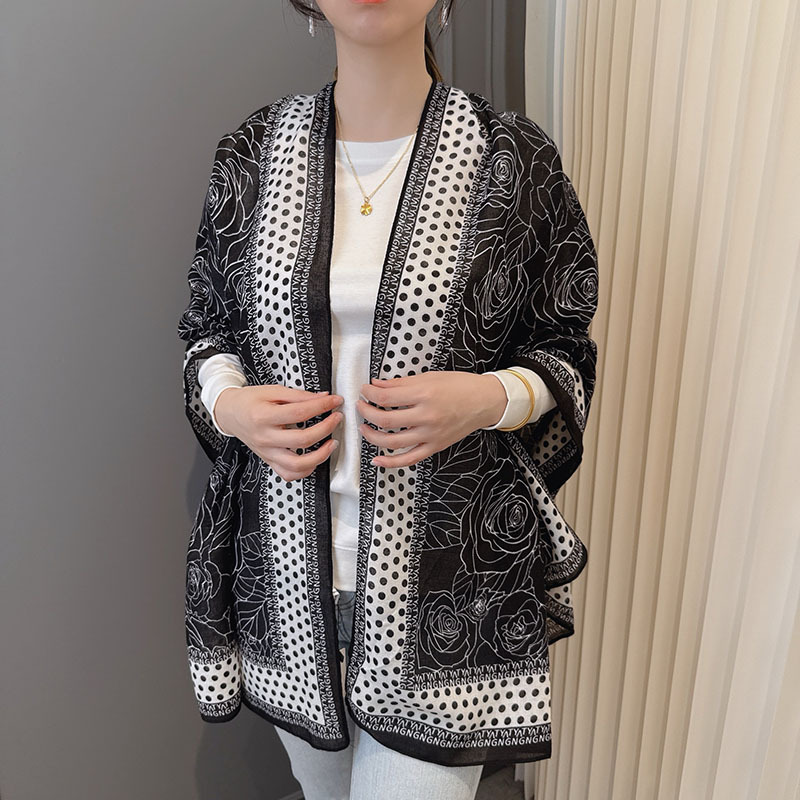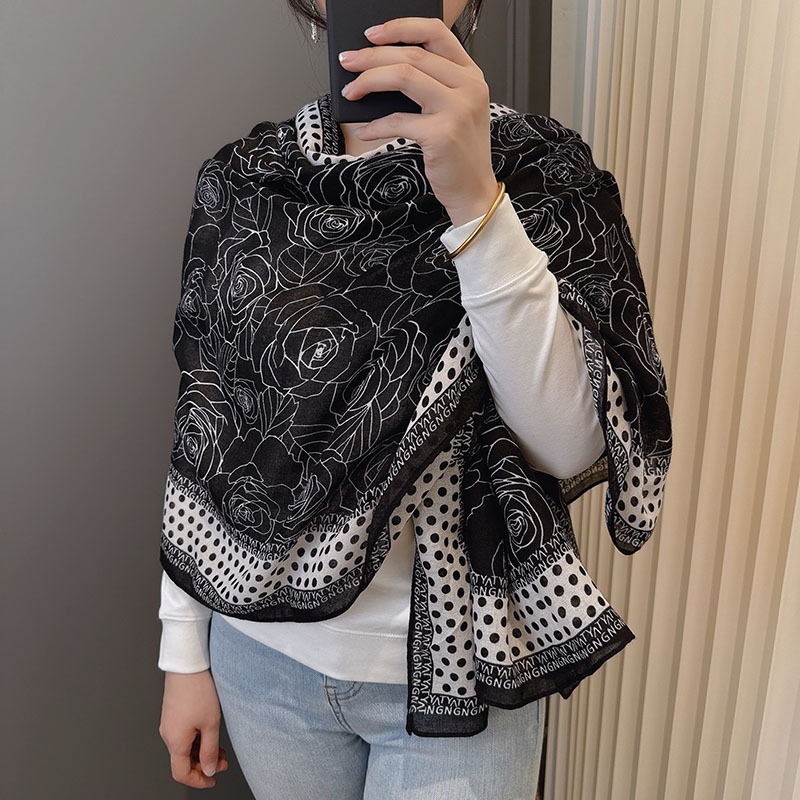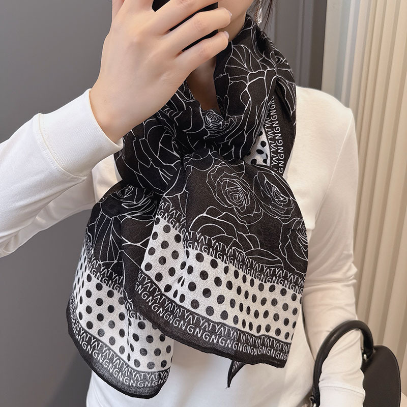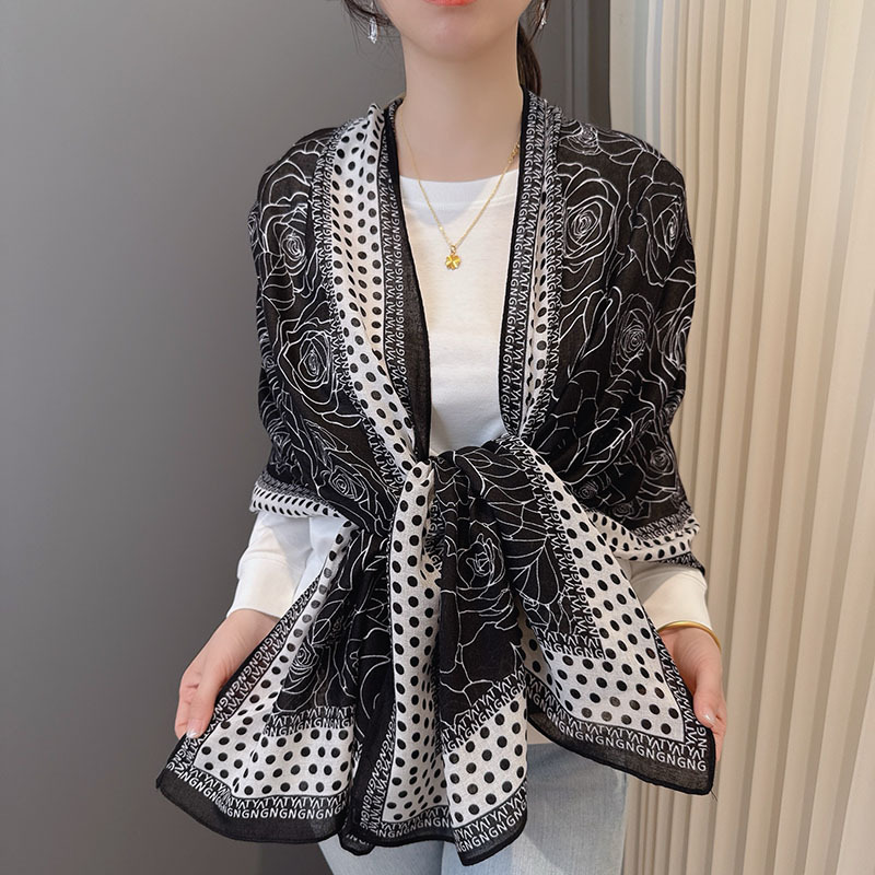 캐주얼하고 우아한 폴카 도트 동백면과 린넨 스카프 여성 OL 통근 스타일 주야간 온도 차이 따뜻한 목도리 부드럽고 가벼운스토어 가기