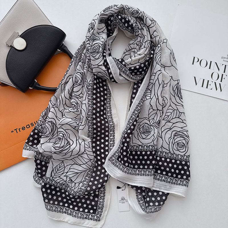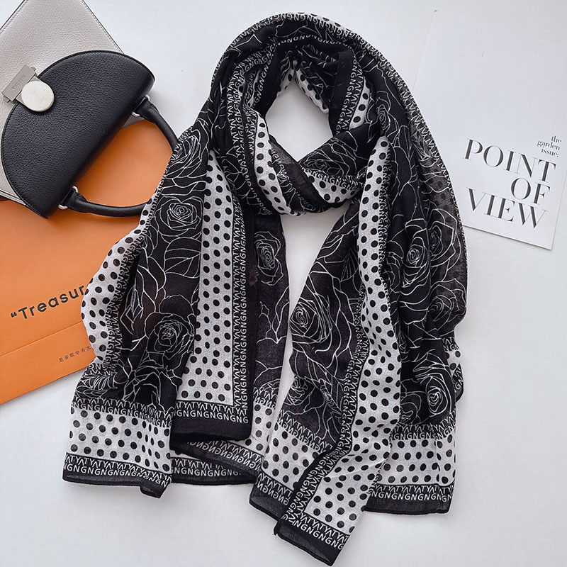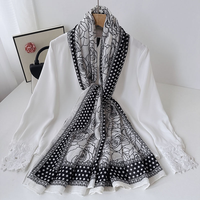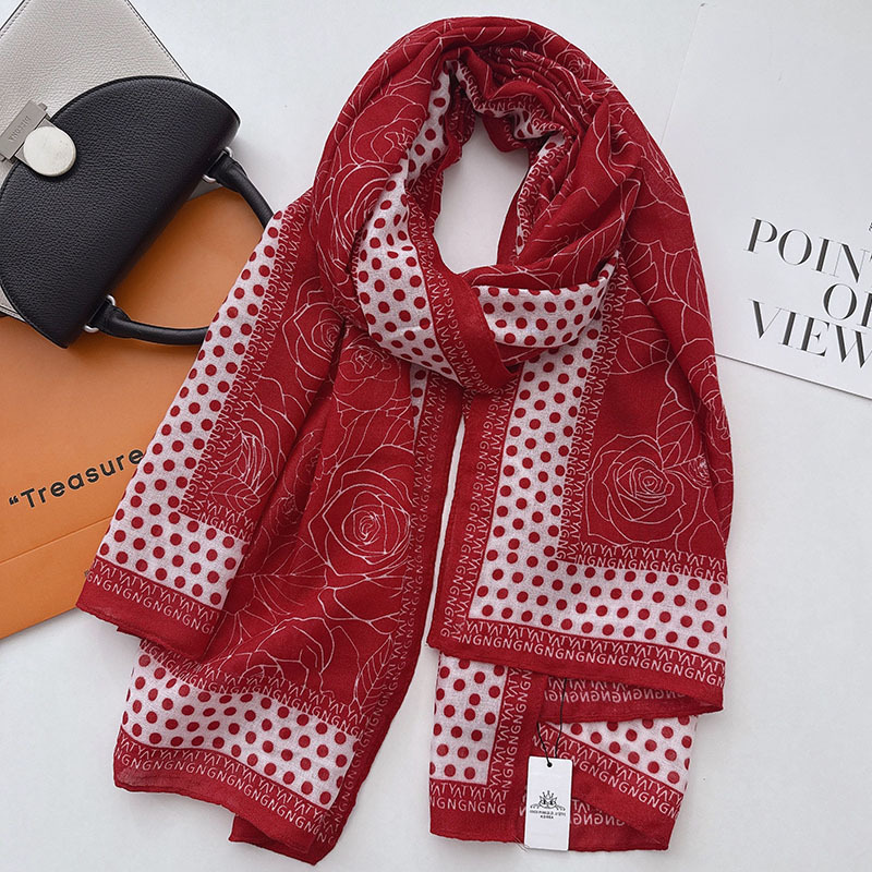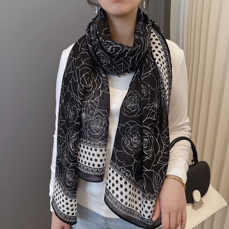 캐주얼하고 우아한 폴카 도트 동백면과 린넨 스카프 여성 OL 통근 스타일 주야간 온도 차이 따뜻한 목도리 부드럽고 가벼운