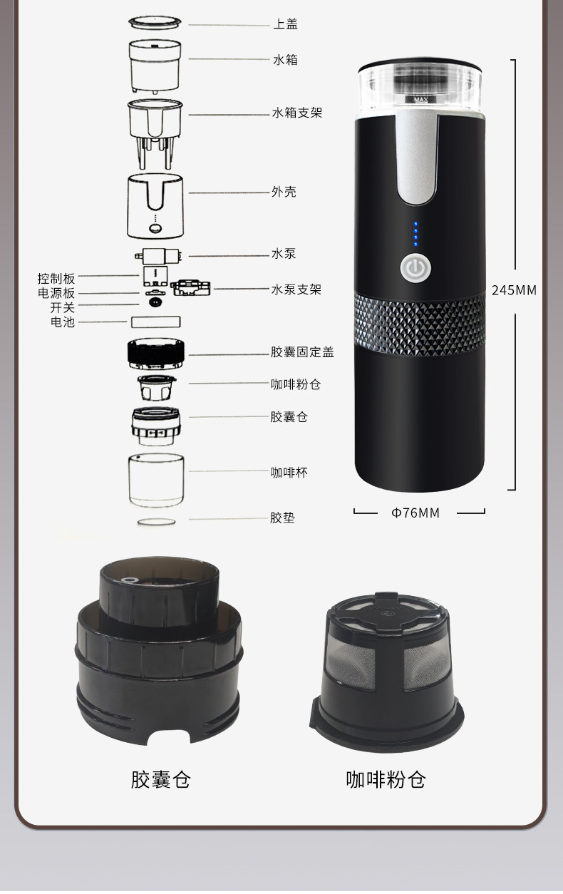 야외 휴대용 무선 USB 전기 캡슐 커피 머신 이탈리아 캡슐 커피 파우더 이중 목적 커피 메이커