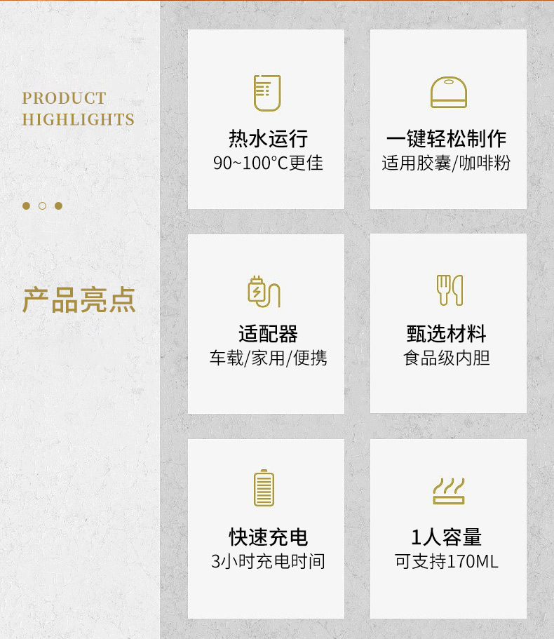 材质:ABS主体、PC盖和杯、304不锈钢水箱