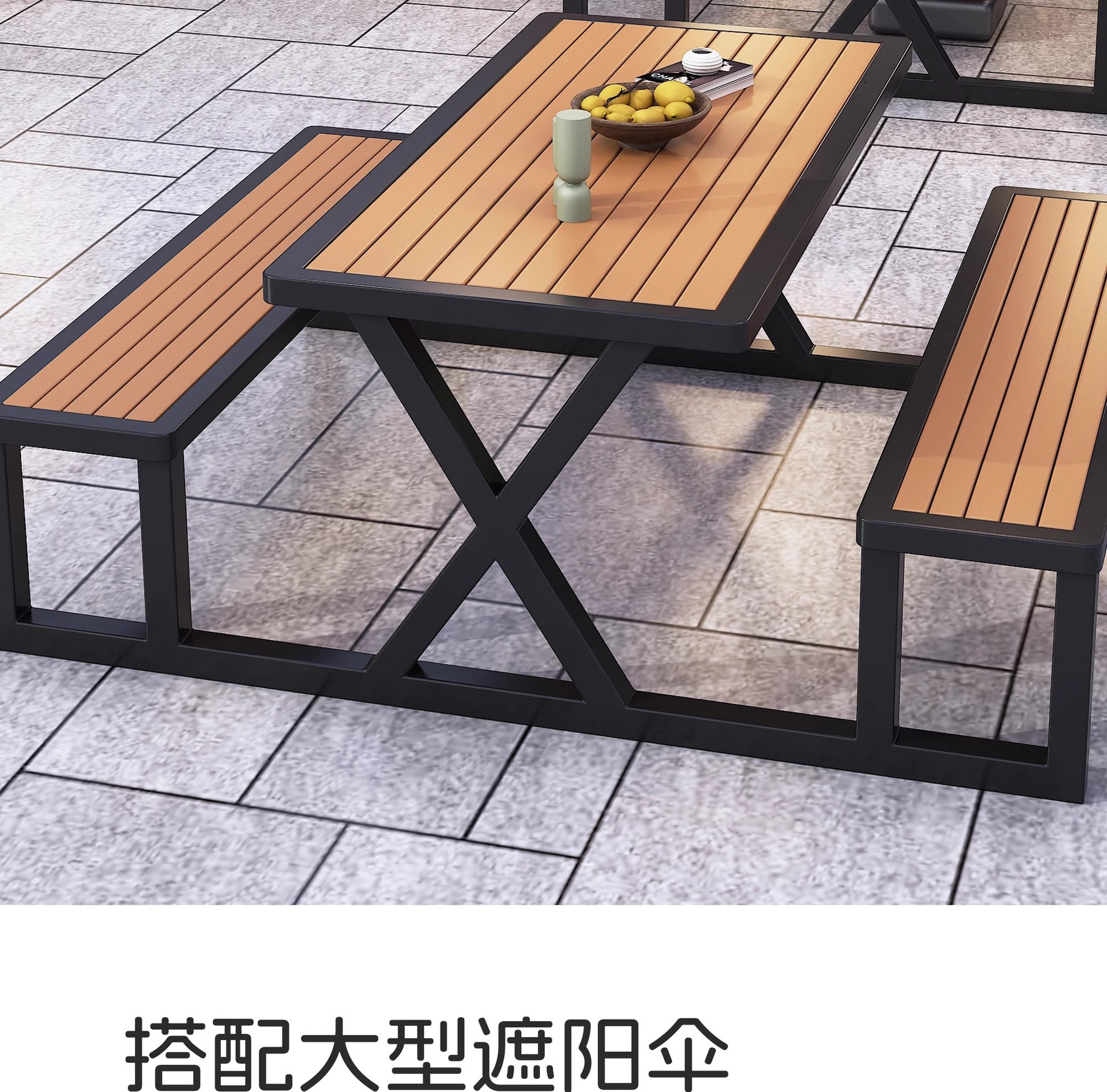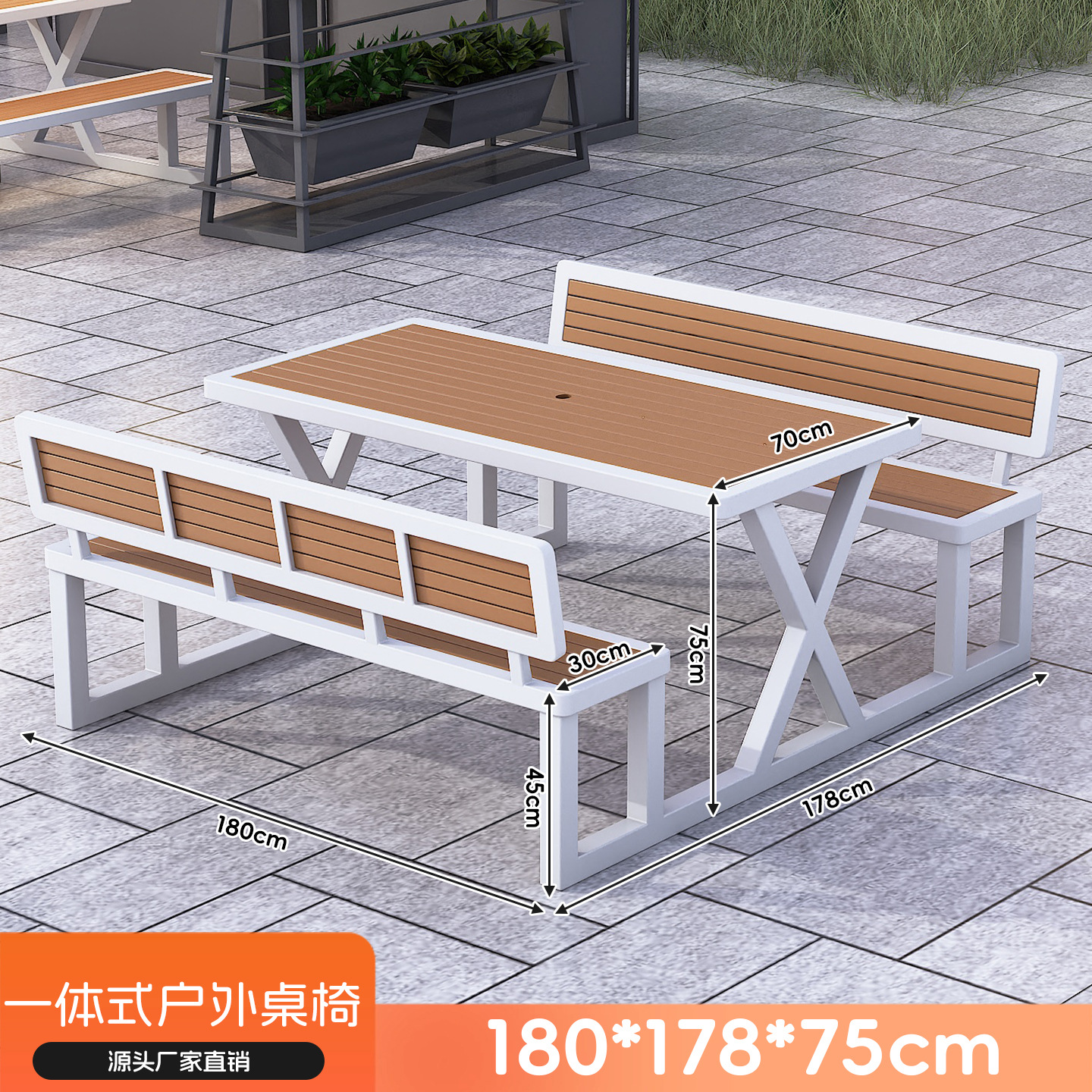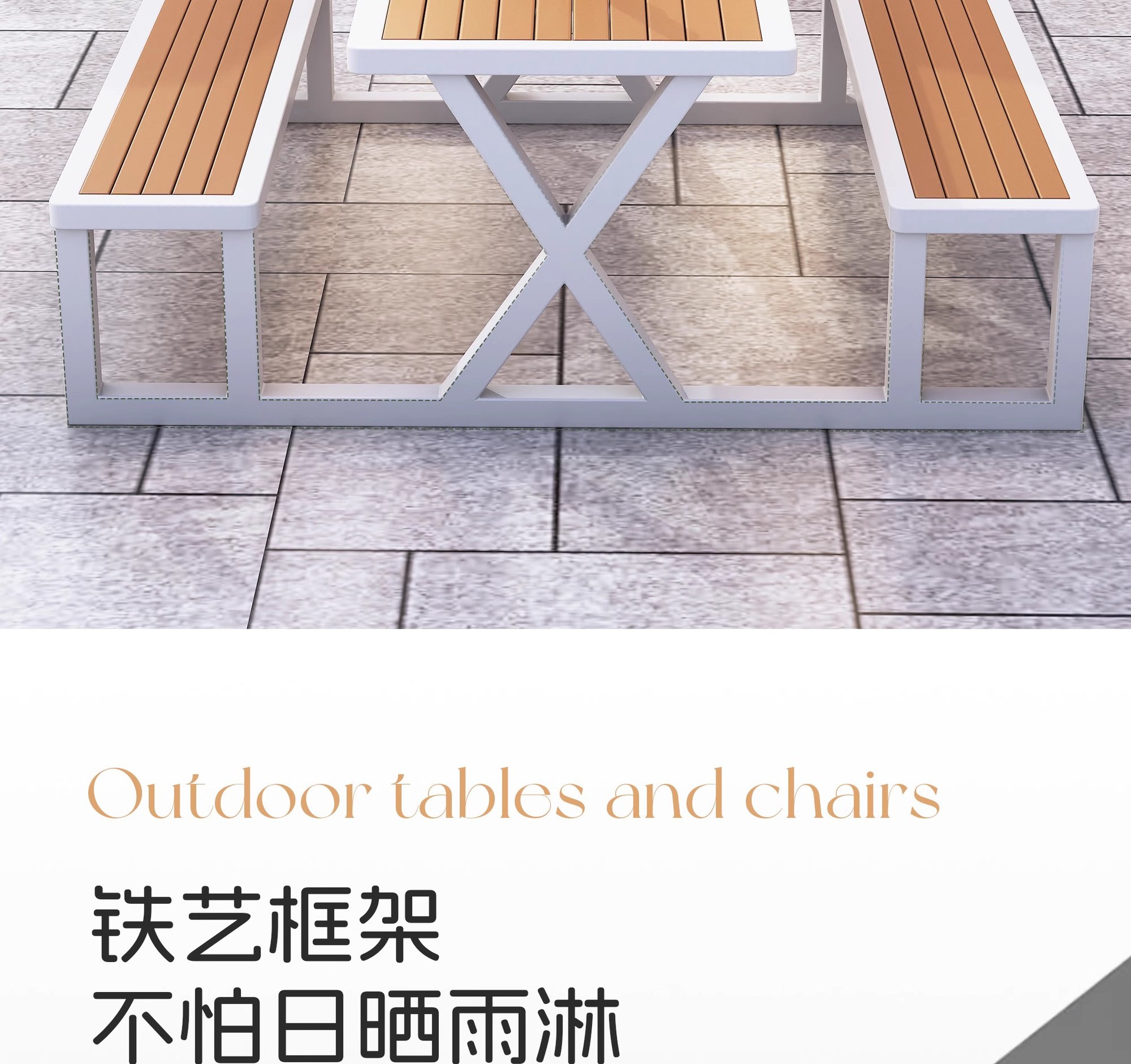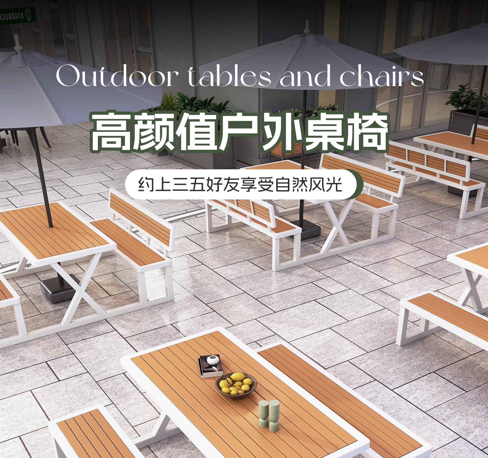 야외 안뜰 방수 및 자외선 차단 일체형 테이블과 의자 야외 상업용 식탁 플라스틱 목재 등받이 긴 테이블과 의자 조합스토어 가기