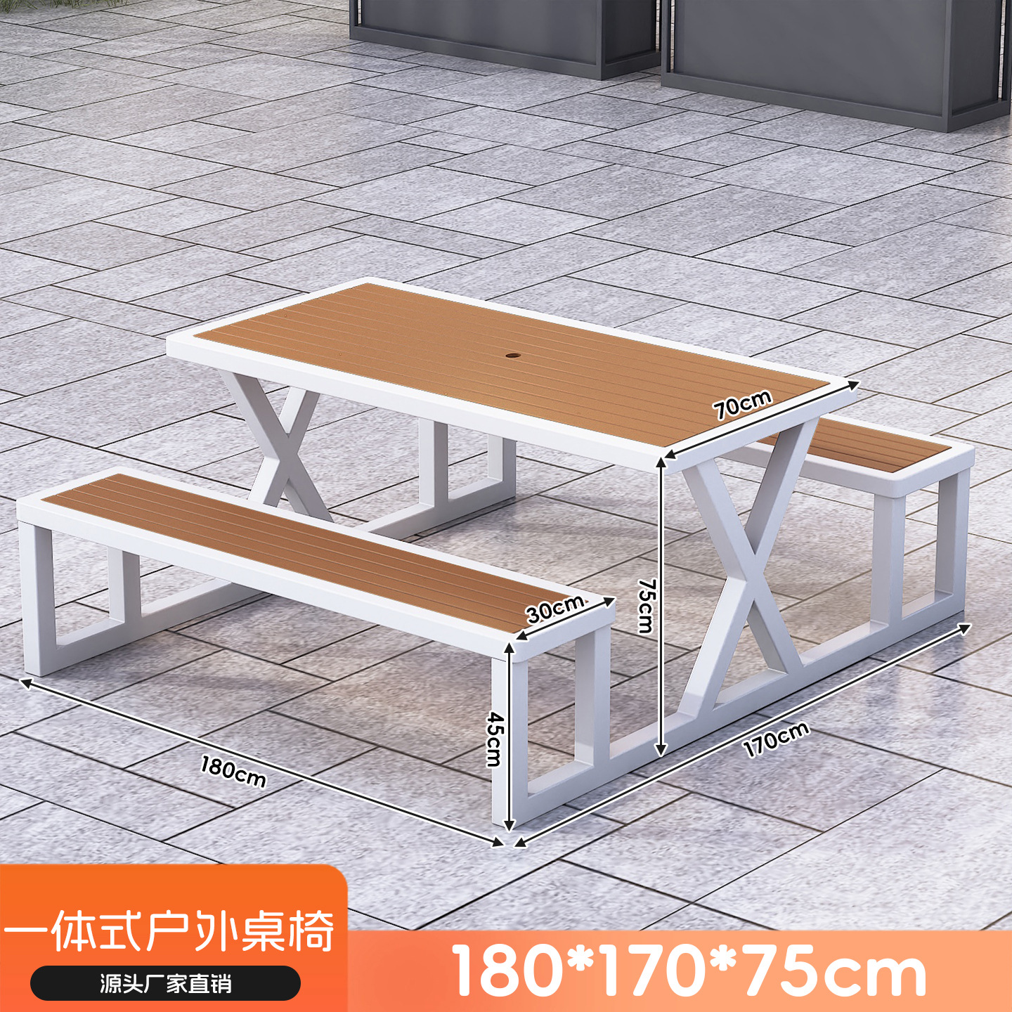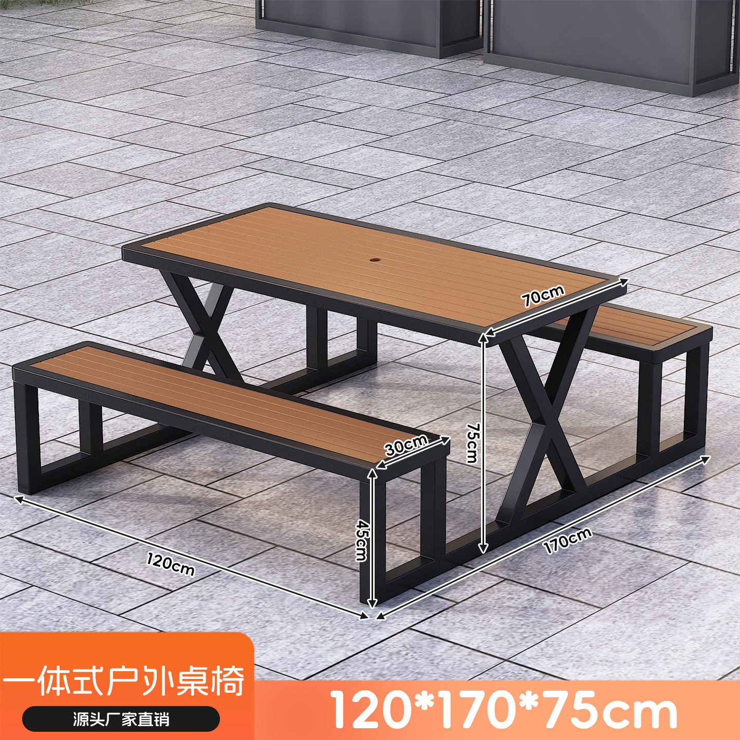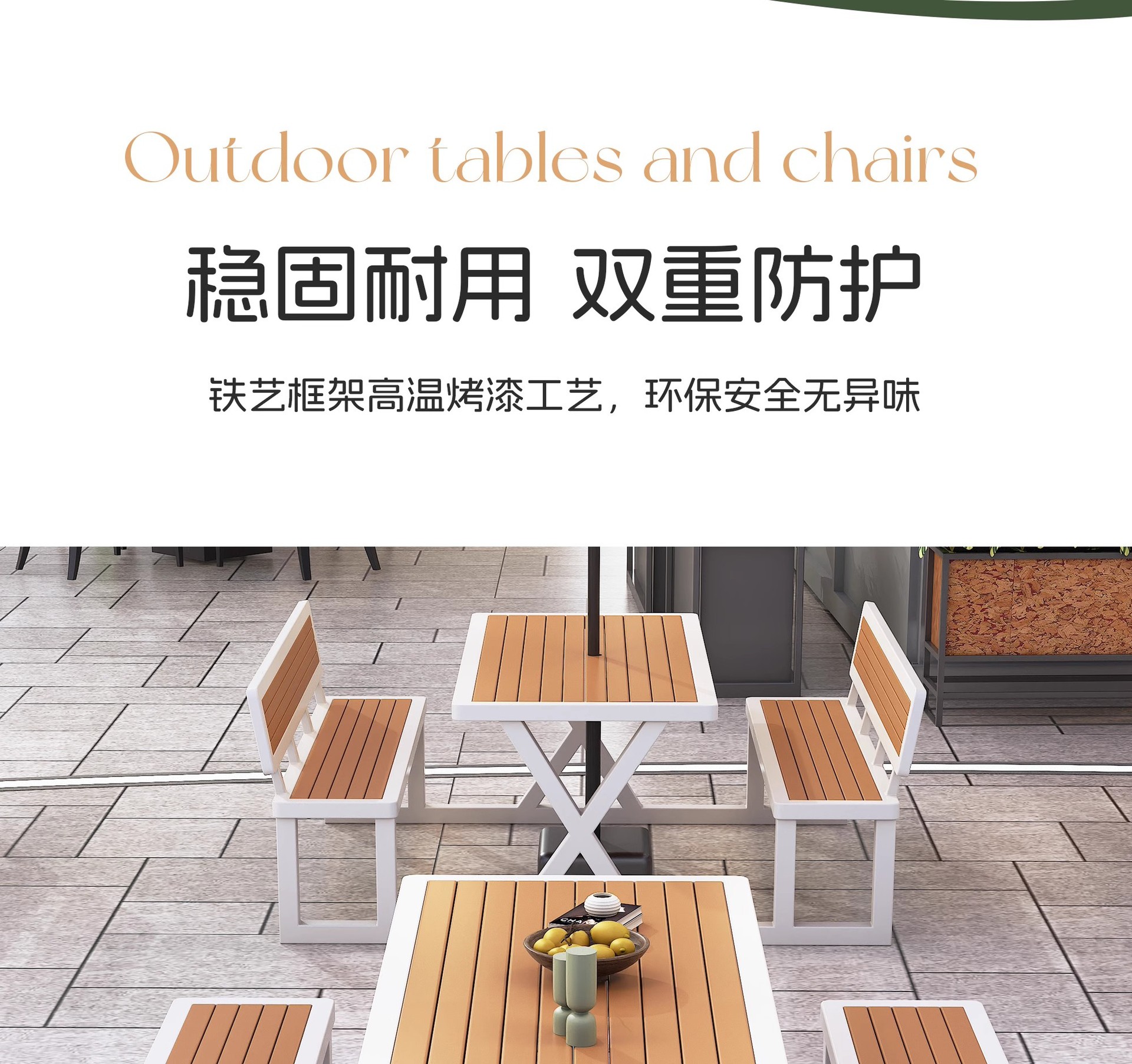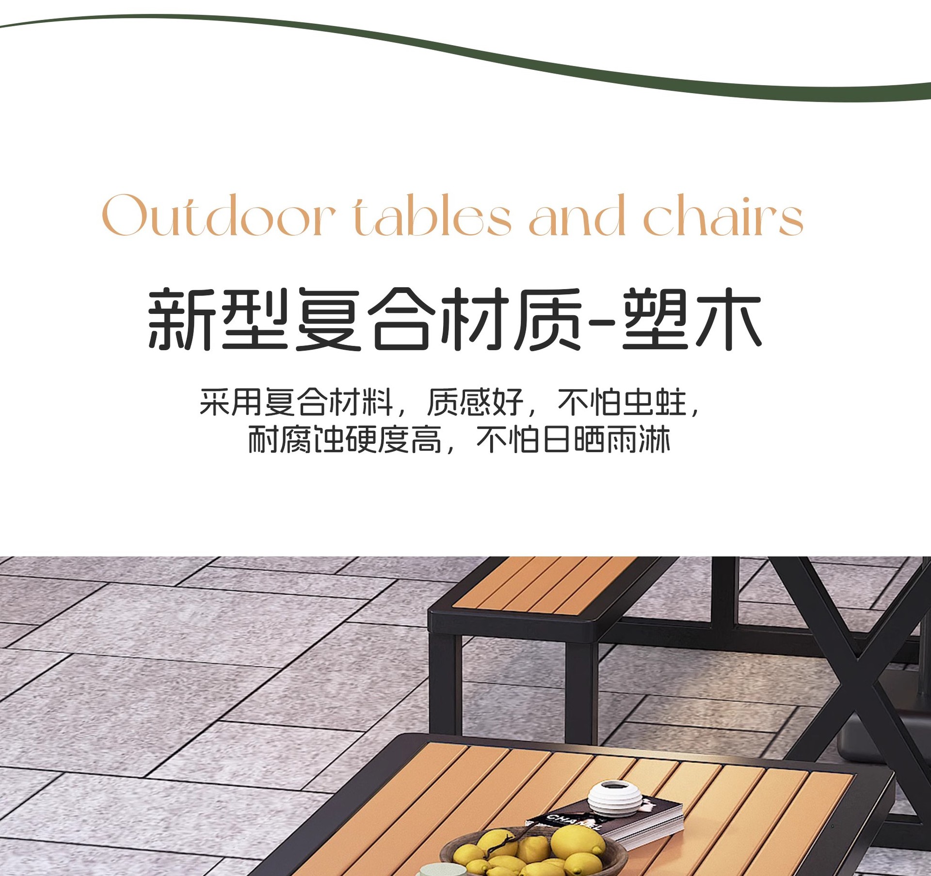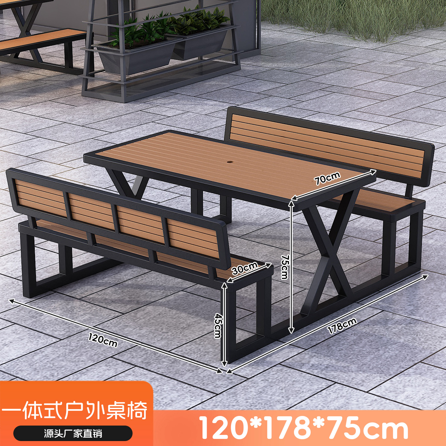 야외 안뜰 방수 및 자외선 차단 일체형 테이블과 의자 야외 상업용 식탁 플라스틱 목재 등받이 긴 테이블과 의자 조합스토어 가기
