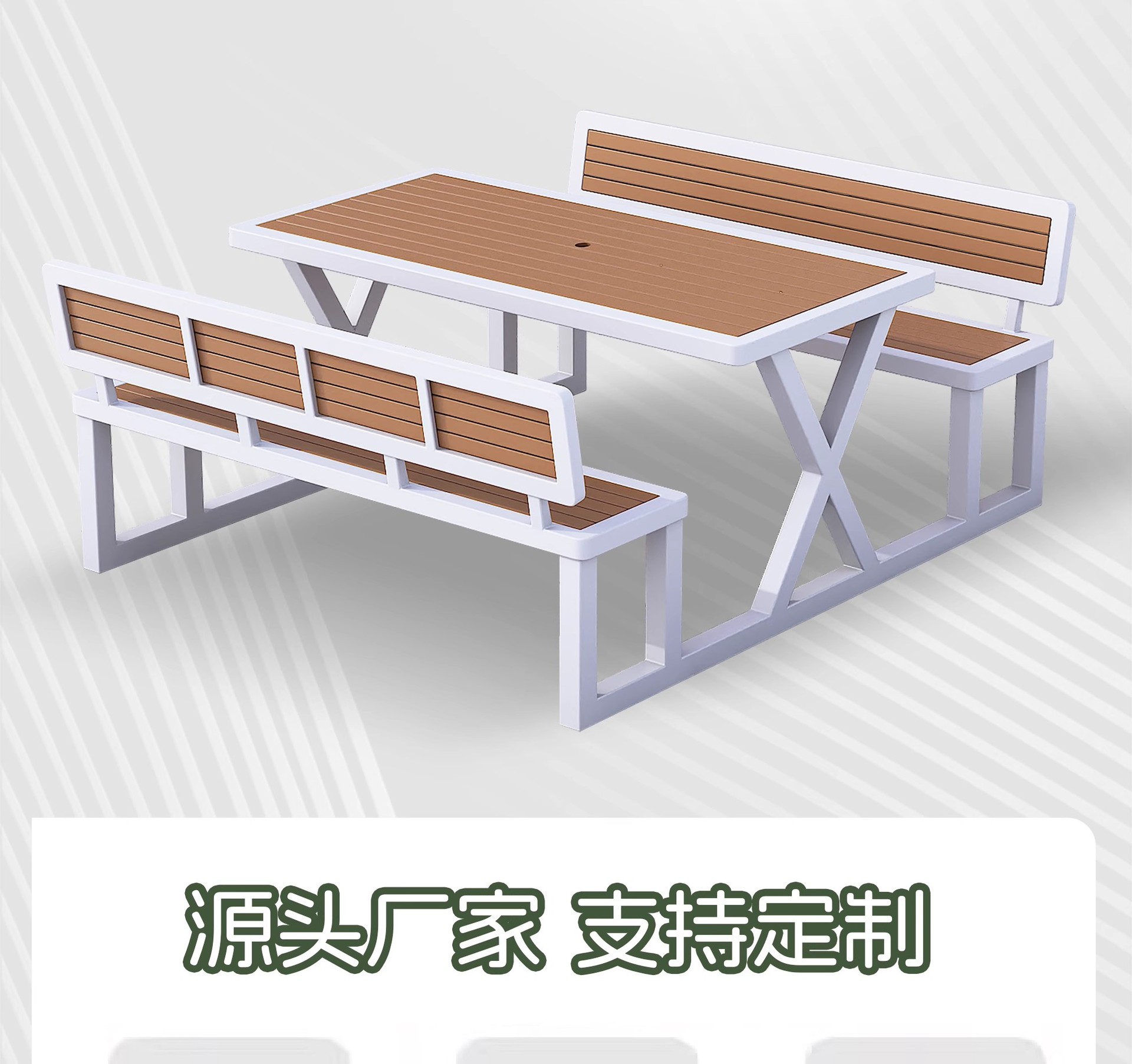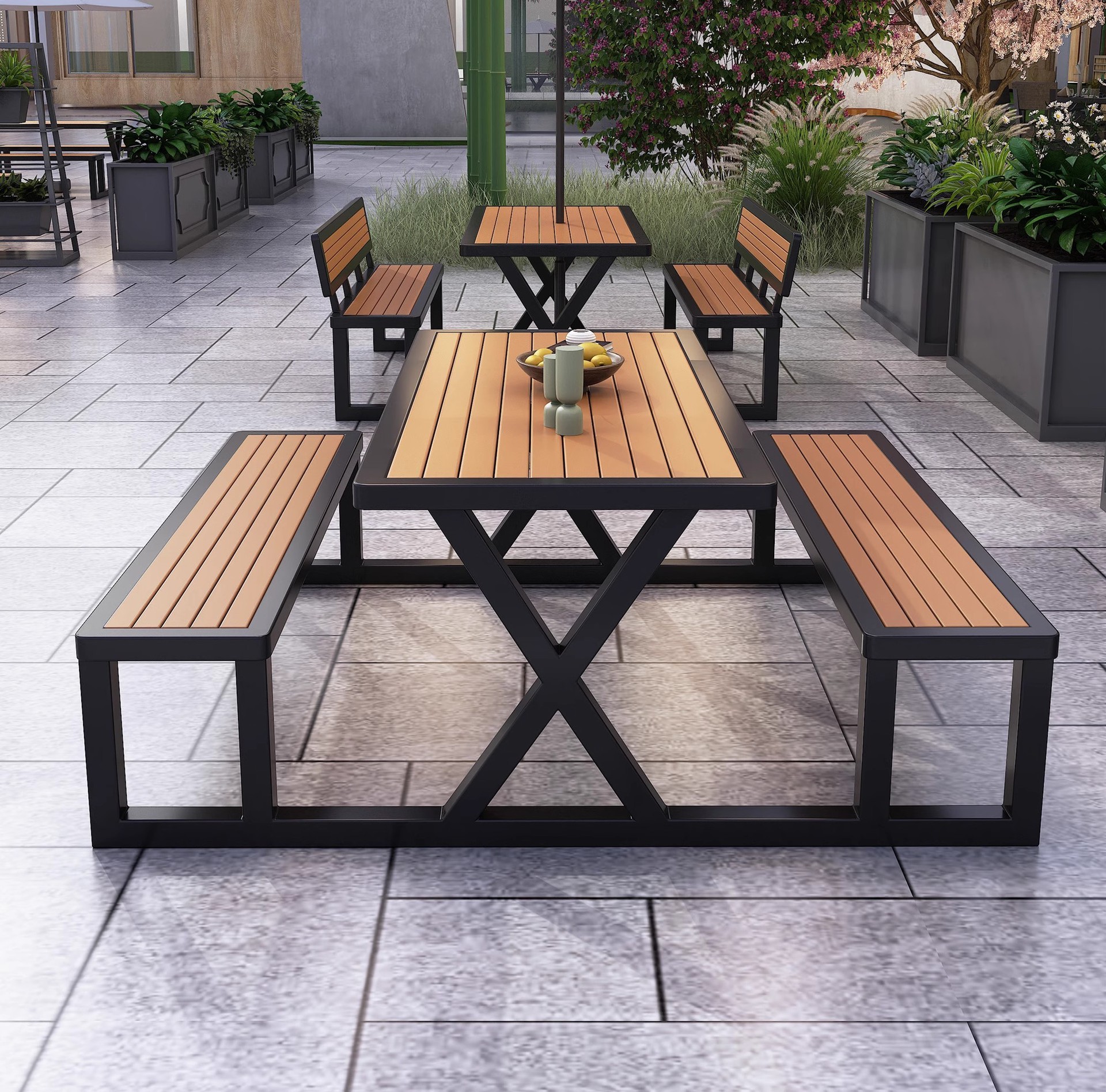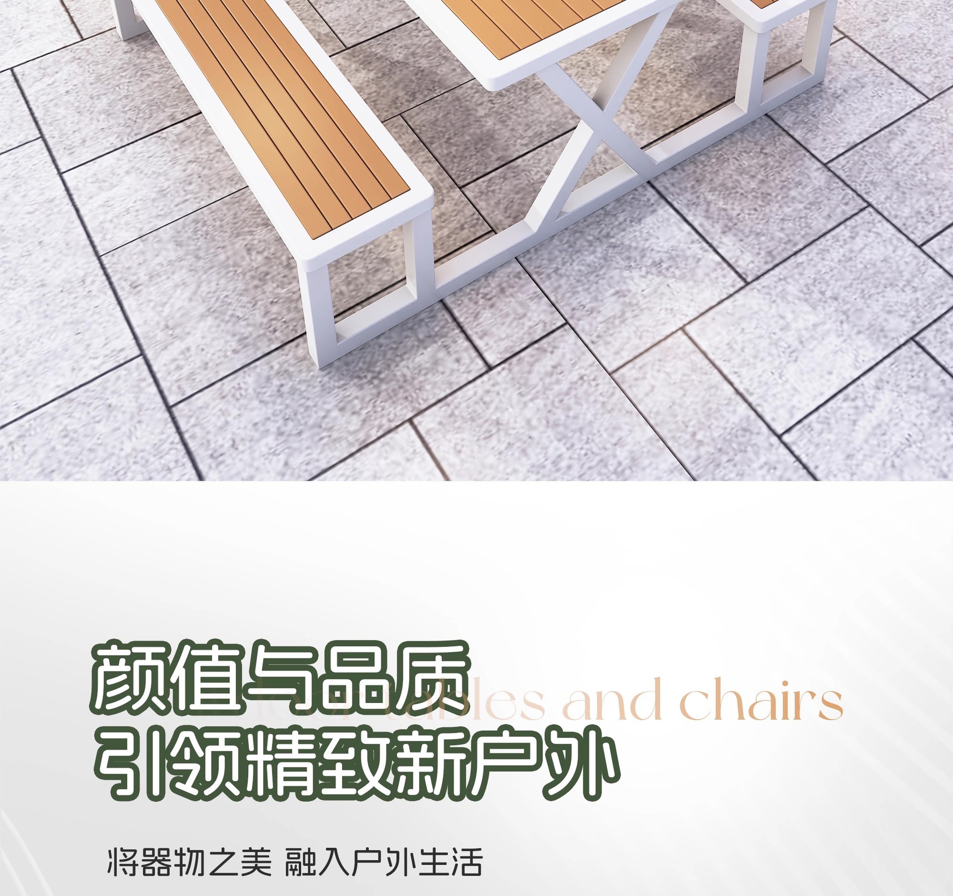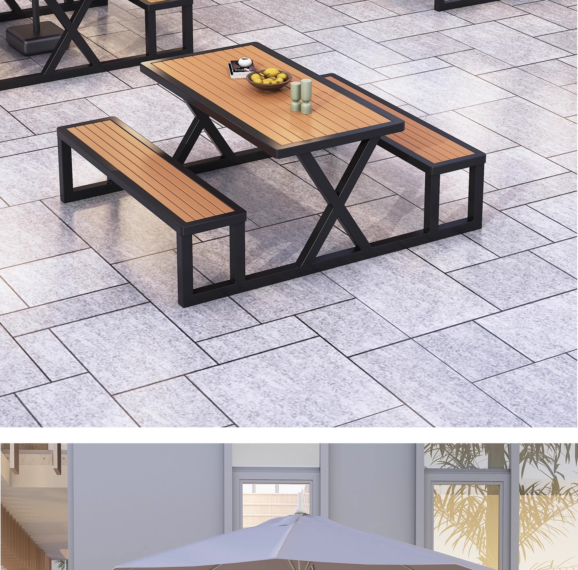 야외 안뜰 방수 및 자외선 차단 일체형 테이블과 의자 야외 상업용 식탁 플라스틱 목재 등받이 긴 테이블과 의자 조합스토어 가기