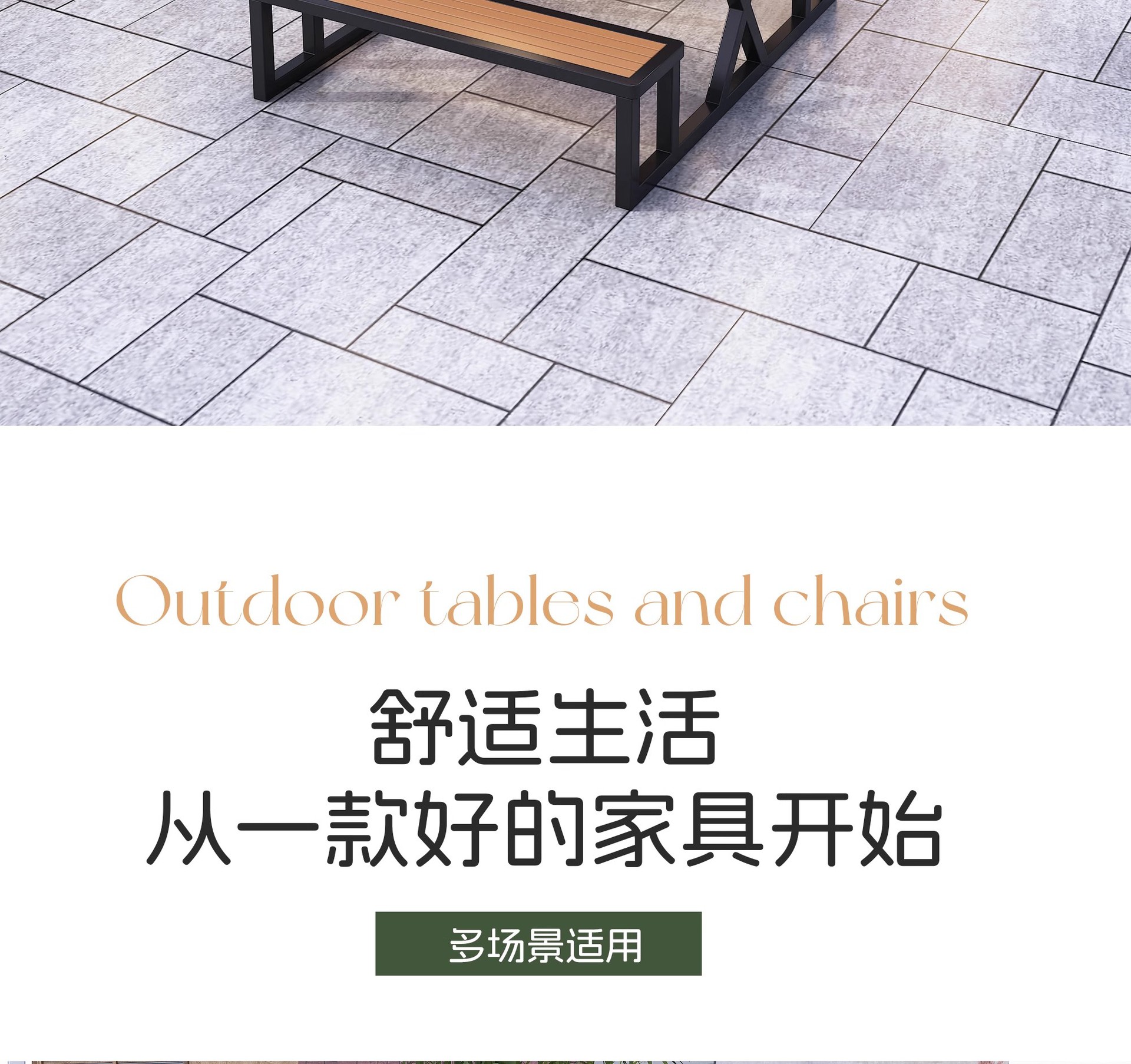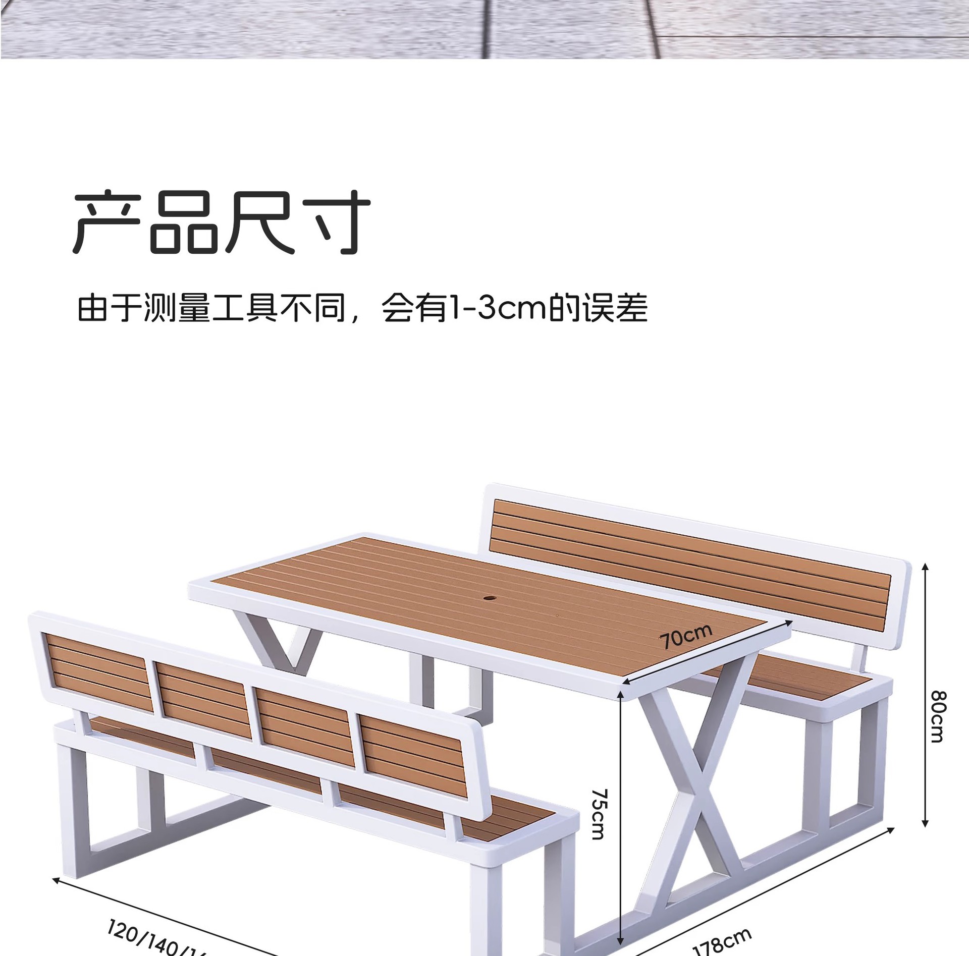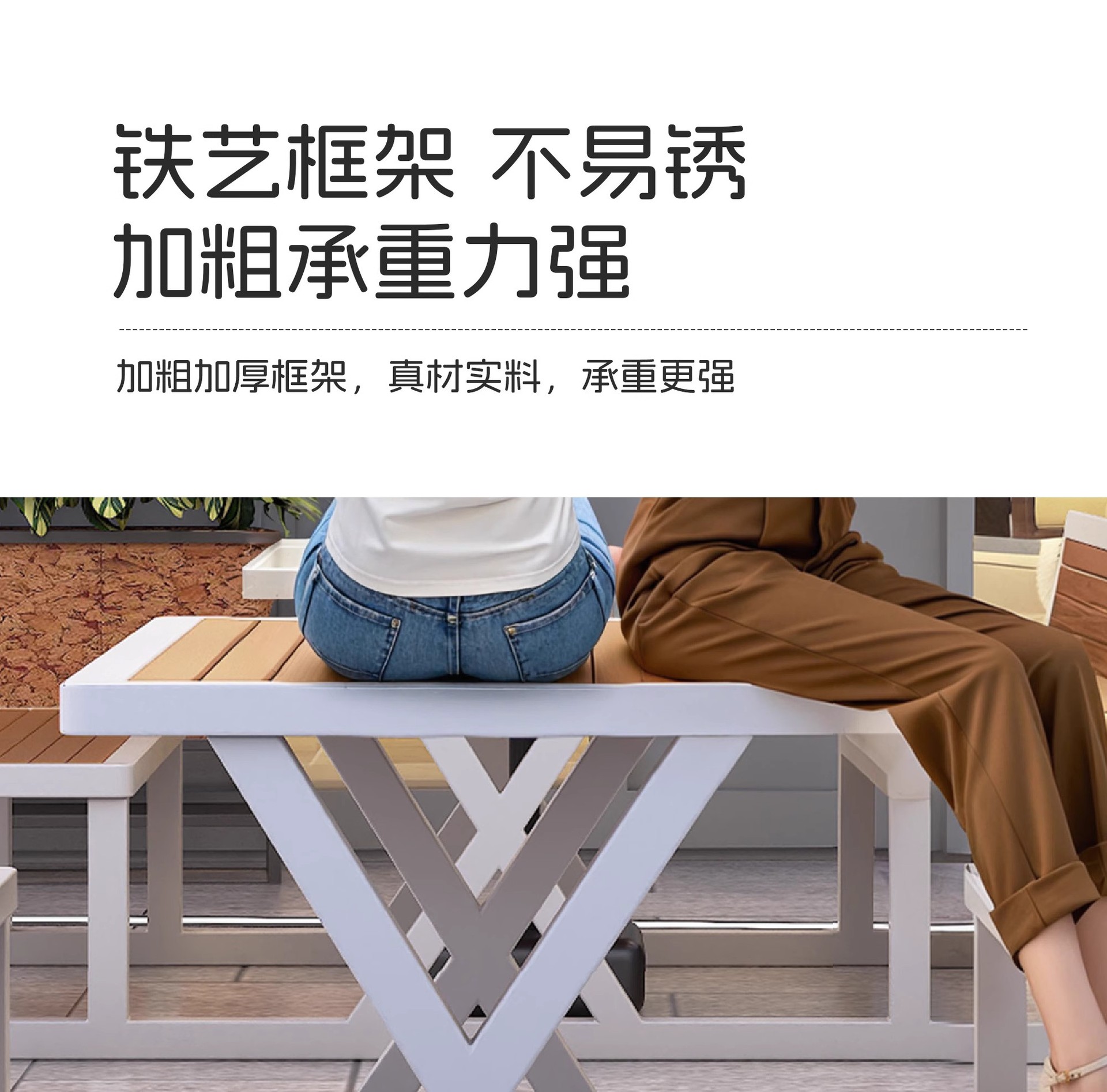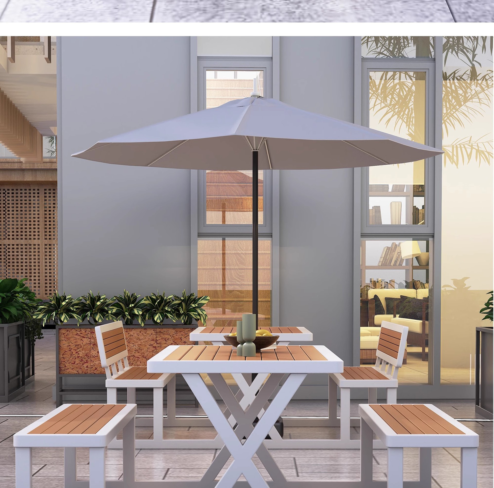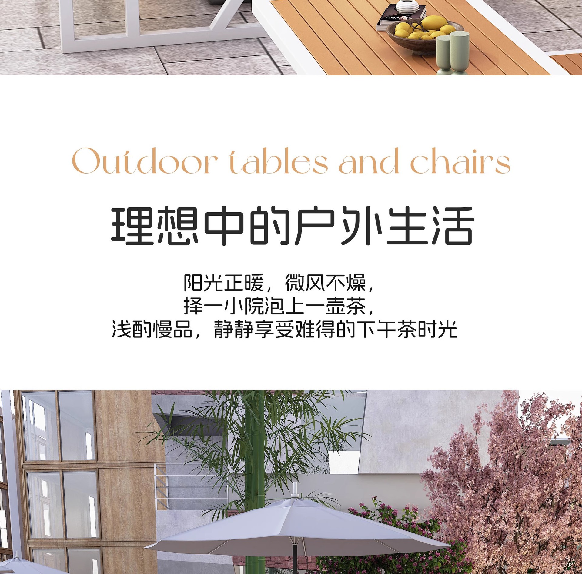 야외 안뜰 방수 및 자외선 차단 일체형 테이블과 의자 야외 상업용 식탁 플라스틱 목재 등받이 긴 테이블과 의자 조합스토어 가기