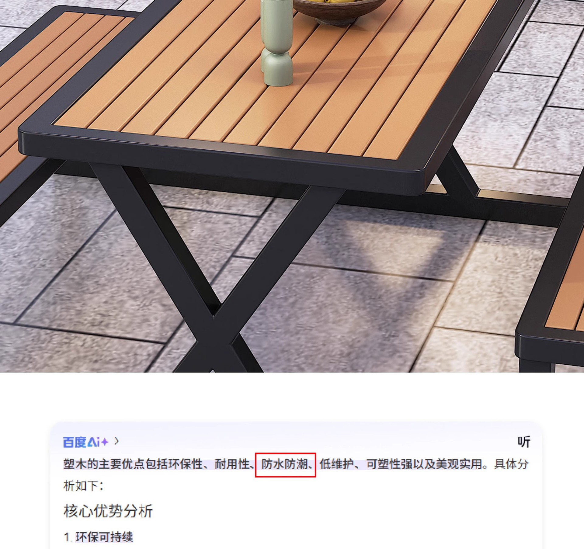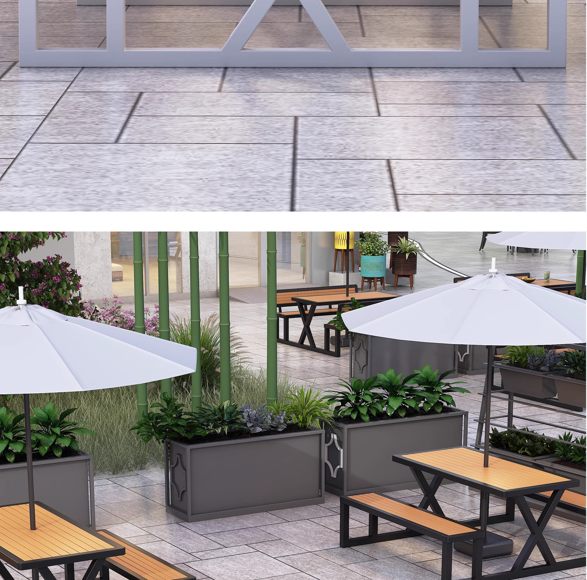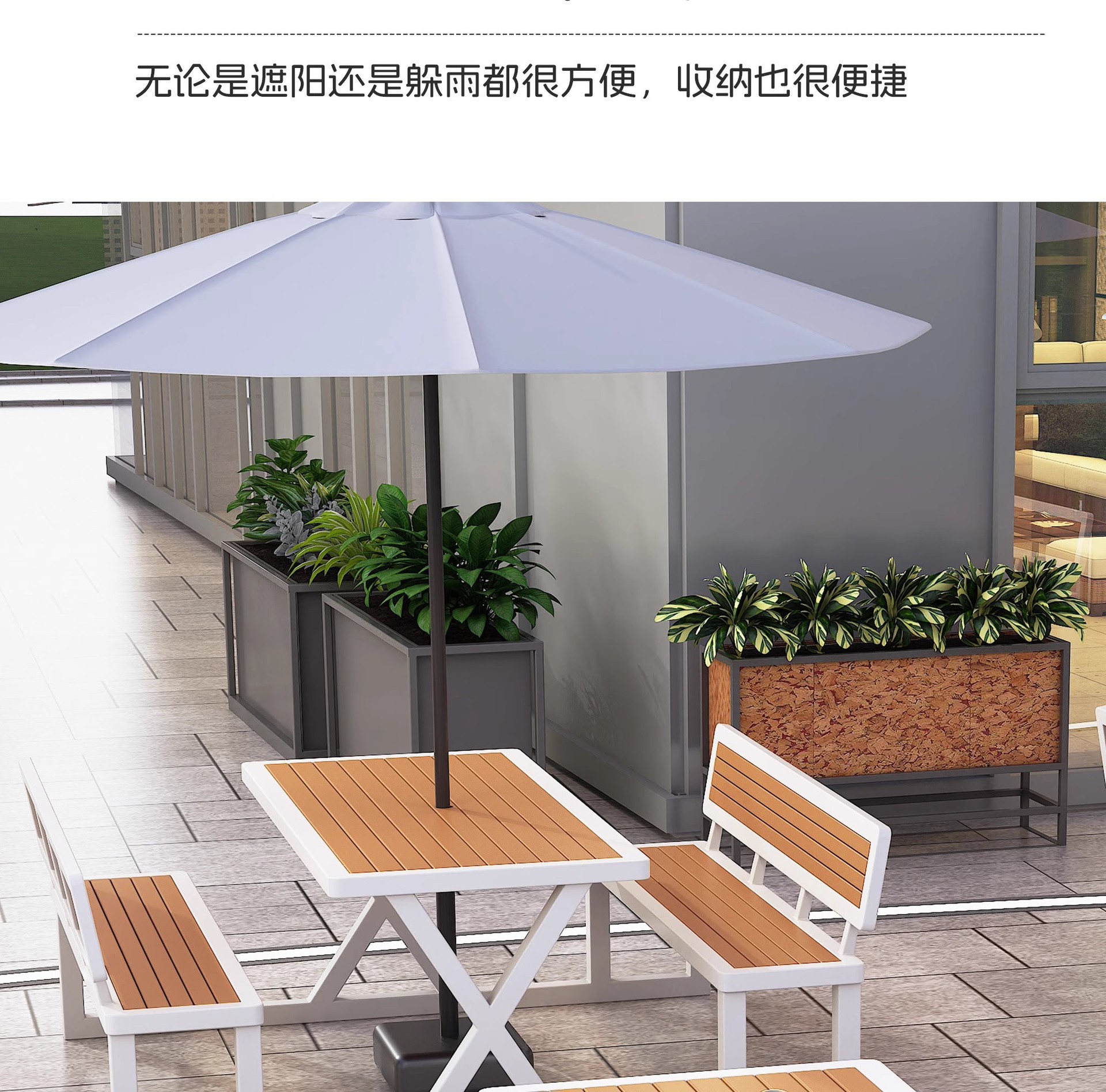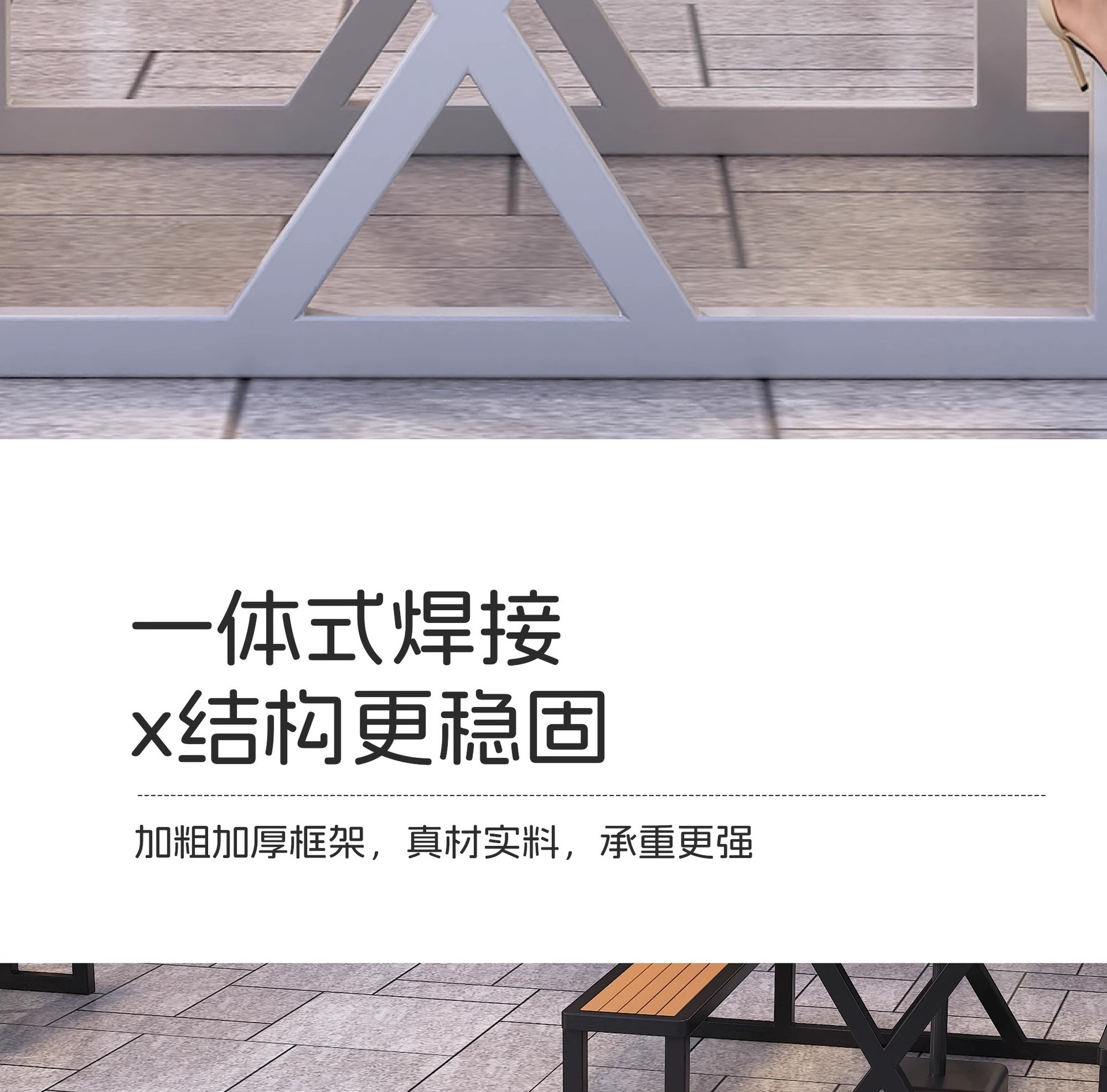 야외 안뜰 방수 및 자외선 차단 일체형 테이블과 의자 야외 상업용 식탁 플라스틱 목재 등받이 긴 테이블과 의자 조합스토어 가기