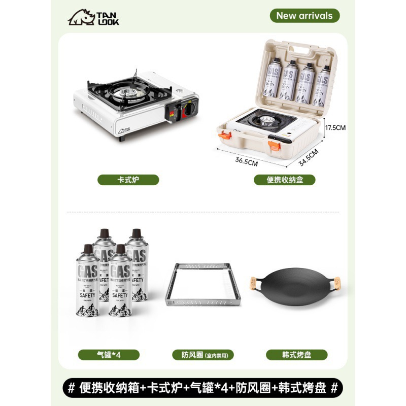 • [수납박스 풀세트] 카세트 스토브 + 가스 4병 + 방풍링 + 한국식 베이킹팬