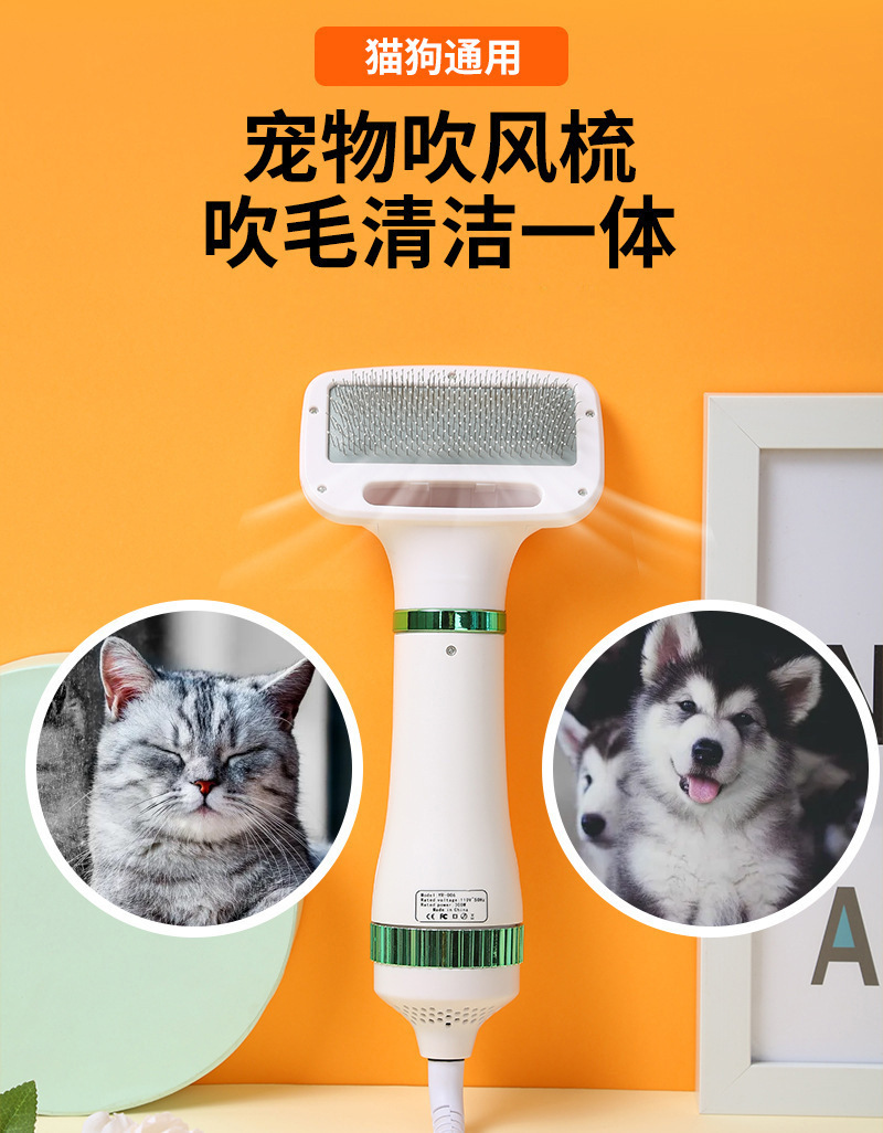 2-in-1 애완동물 헤어드라이어, 헤어 빗, 헤어드라이어 및 청소, 일체형 개용 열풍 빗, 고양이용 헤어드라이어 및 빗스토어 가기