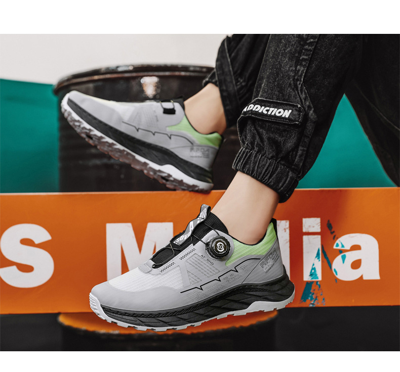 여름 신상 메쉬 통기성 스포츠 트렌디 슈즈, 두꺼운 밑창, 높이 증가, 캐주얼한 개성, 회전 노브 끈, 아빠 신발, 남성 신발스토어 가기