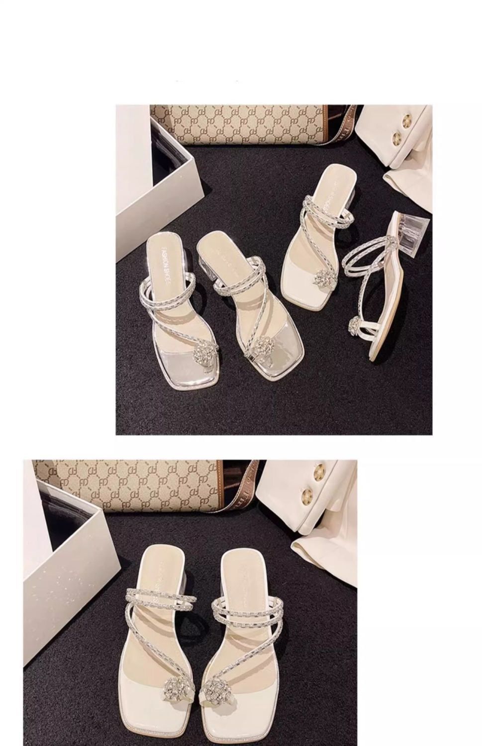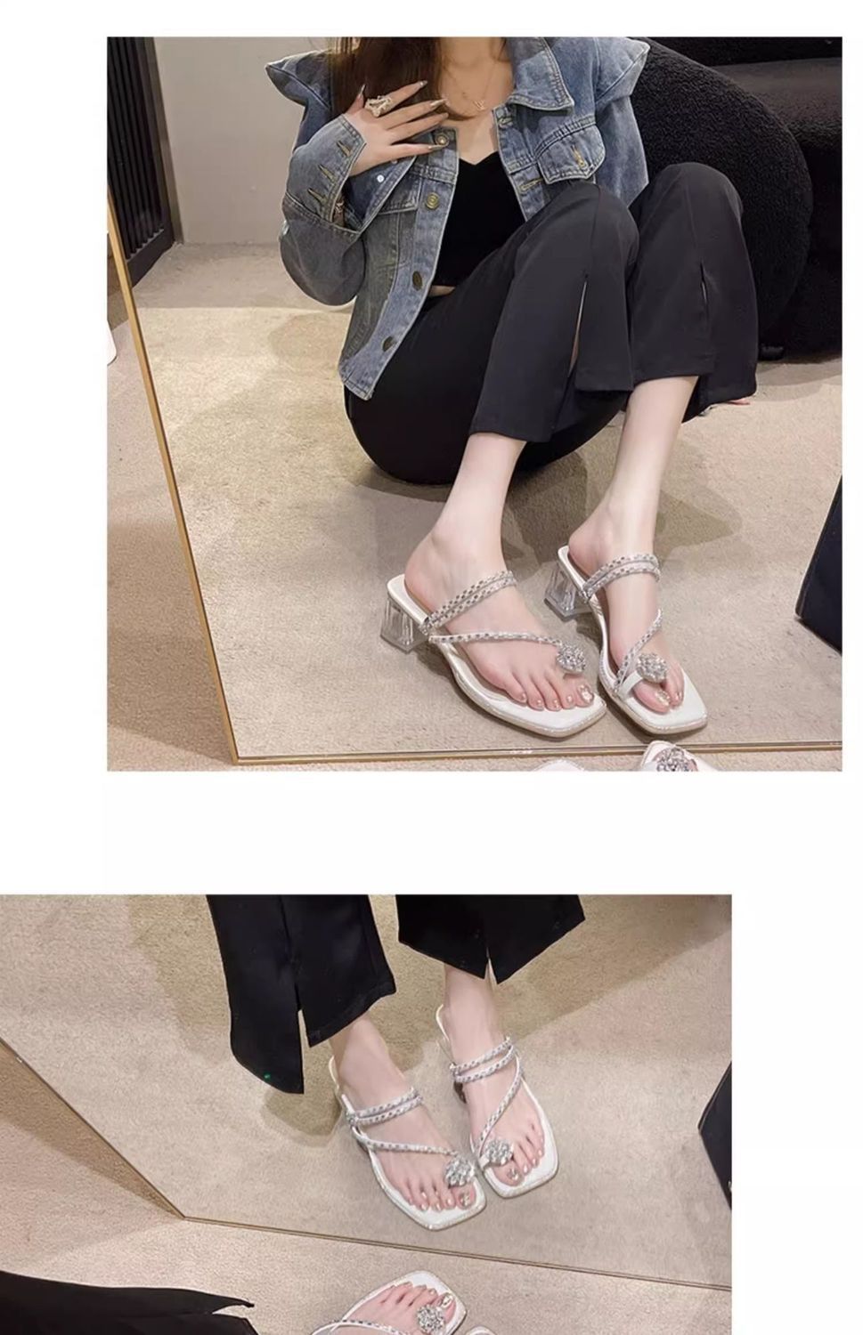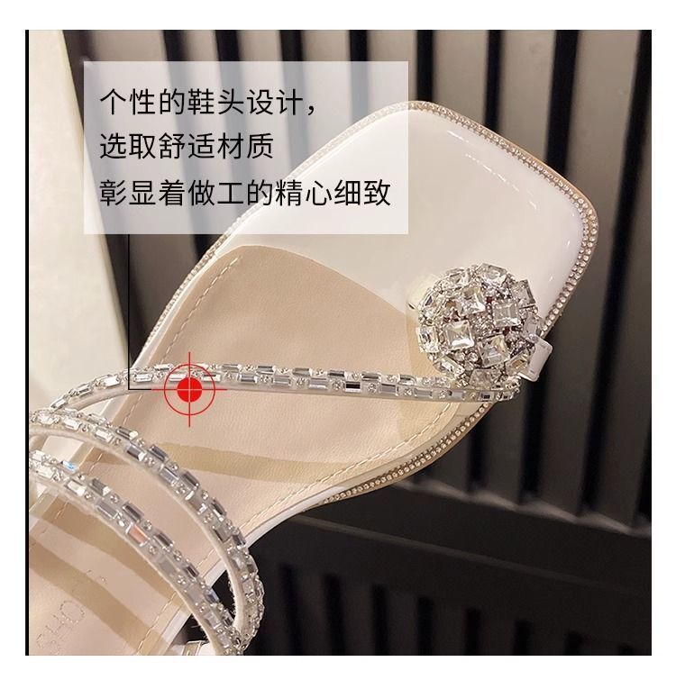 크리스탈 라인스톤 프렌치 페어리 스타일 샌들 스커트와 함께 착용하는 여성용 두꺼운 굽 하이힐 샌들 2025 신작 여름스토어 가기