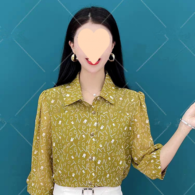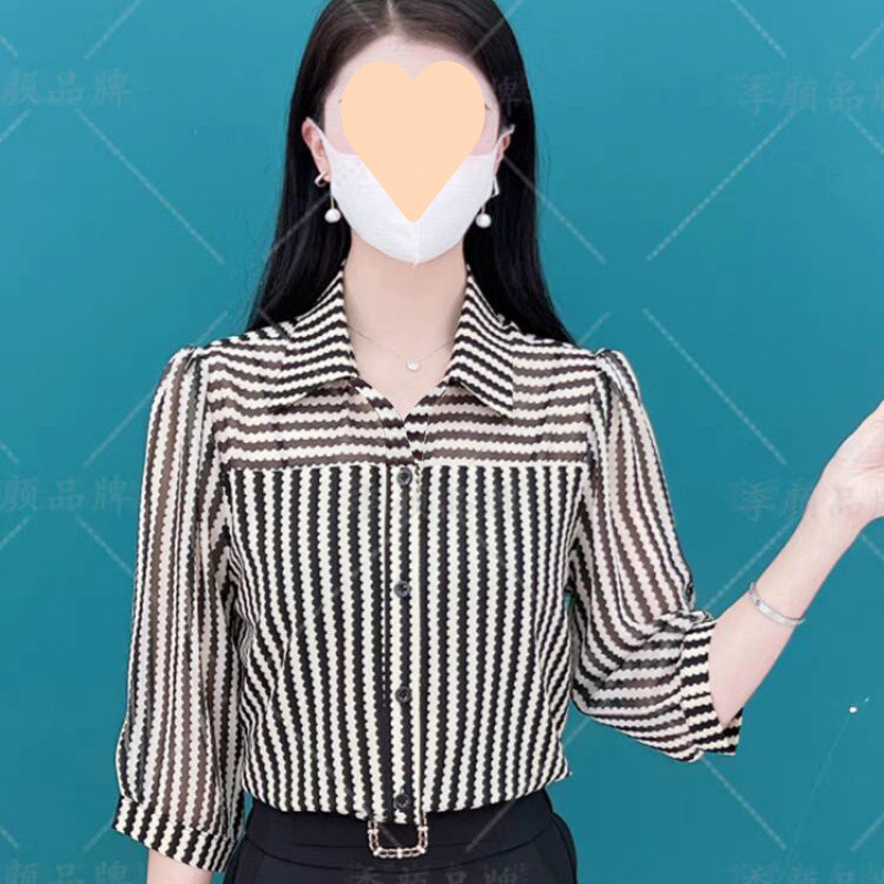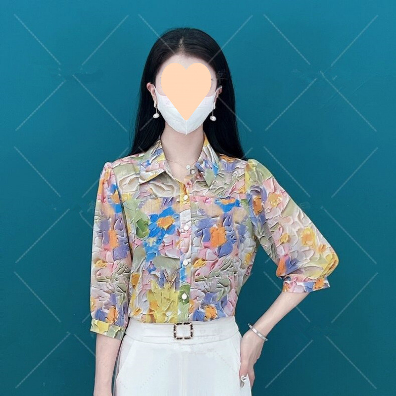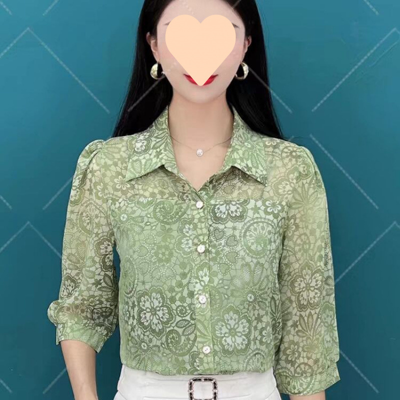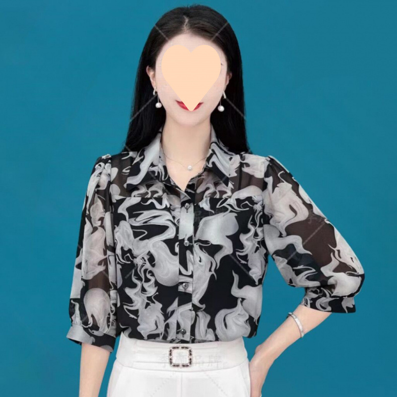 여름 얇은 7부소매 프린트 셔츠 플러스 사이즈 중년 엄마 플러스 사이즈 슬리밍 가디건 쉬폰 탑스토어 가기