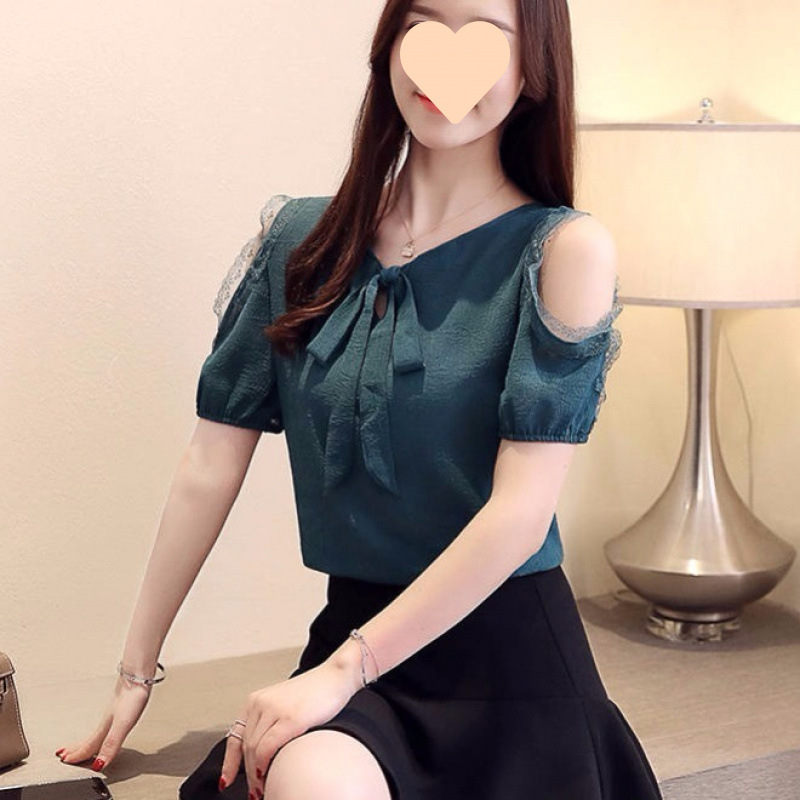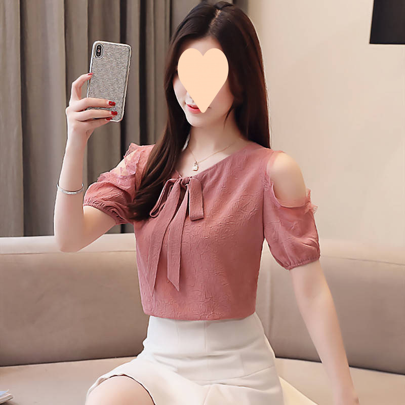 쉬폰 반팔 여성 여름 2025 신상 여성 한국 패션 레이스 업 스타일 인형 셔츠 기질 오프 숄더 탑 여성스토어 가기
