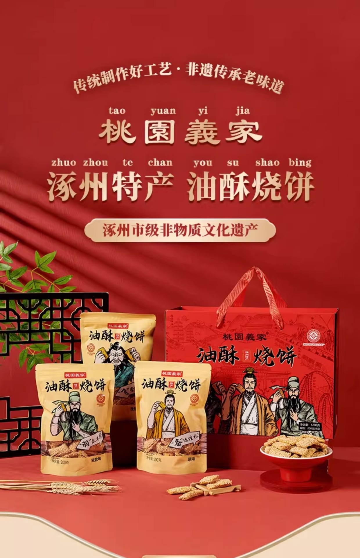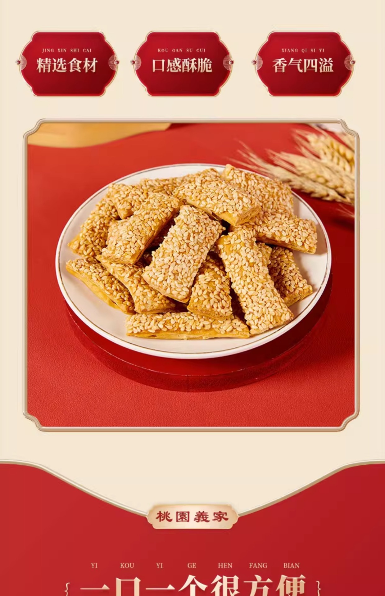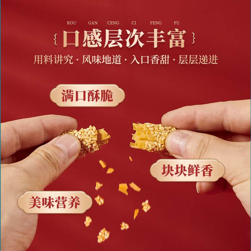 주저우 특산품 크리스피 빵빵과자, 튀기지 않은 식물성 기름 구운 참깨 바삭바삭 짭짤한 스낵 한 박스, Tao Yuan Yijia