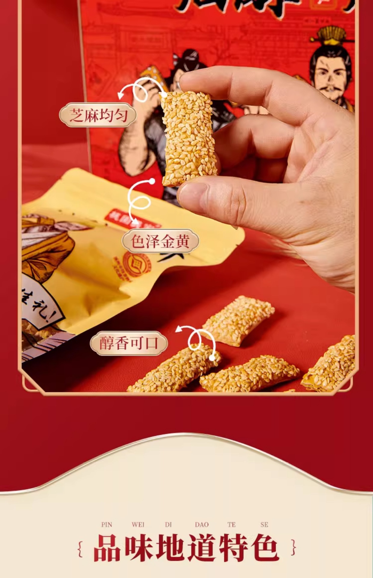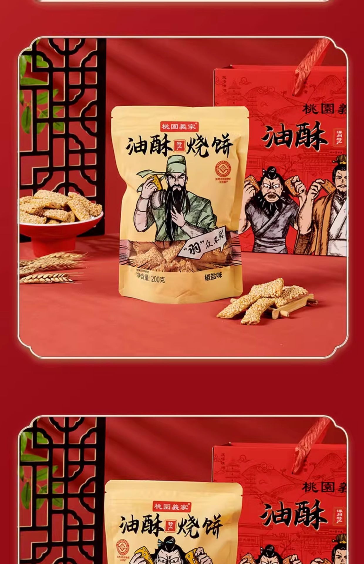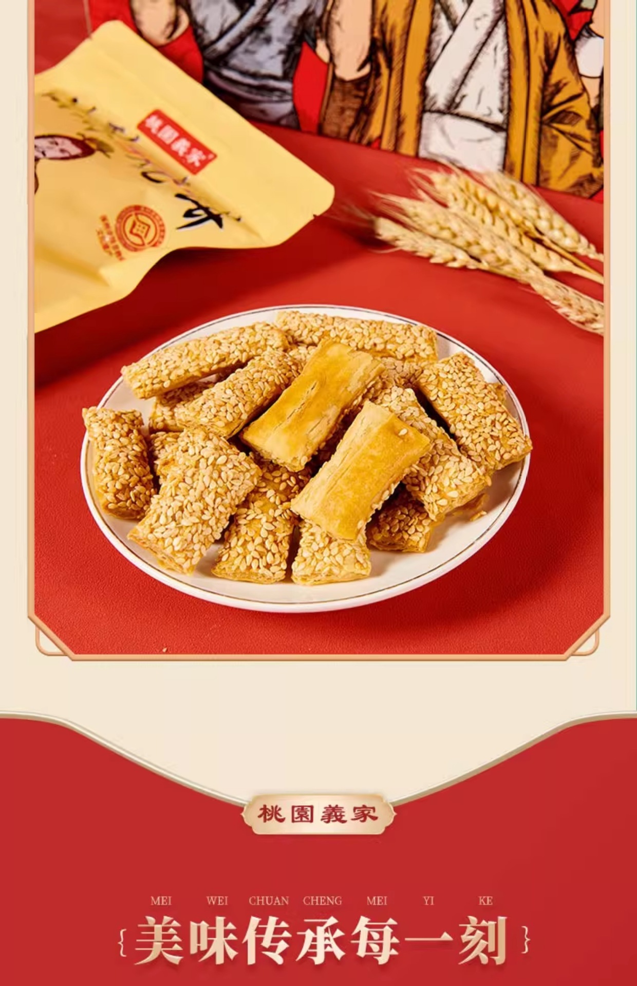 주저우 특산품 크리스피 빵빵과자, 튀기지 않은 식물성 기름 구운 참깨 바삭바삭 짭짤한 스낵 한 박스, Tao Yuan Yijia