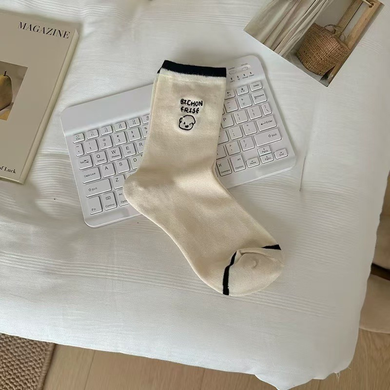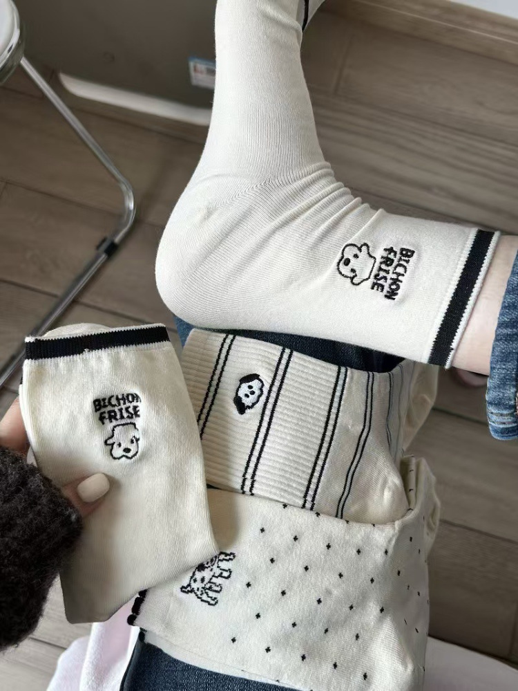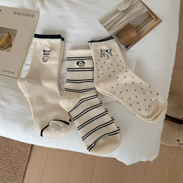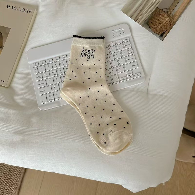 여름 긴 양말 얼룩말 만화 강아지 양말 여성 중간 튜브 양말 봄과 가을 귀여운 일본 면 양말 ins 한국어