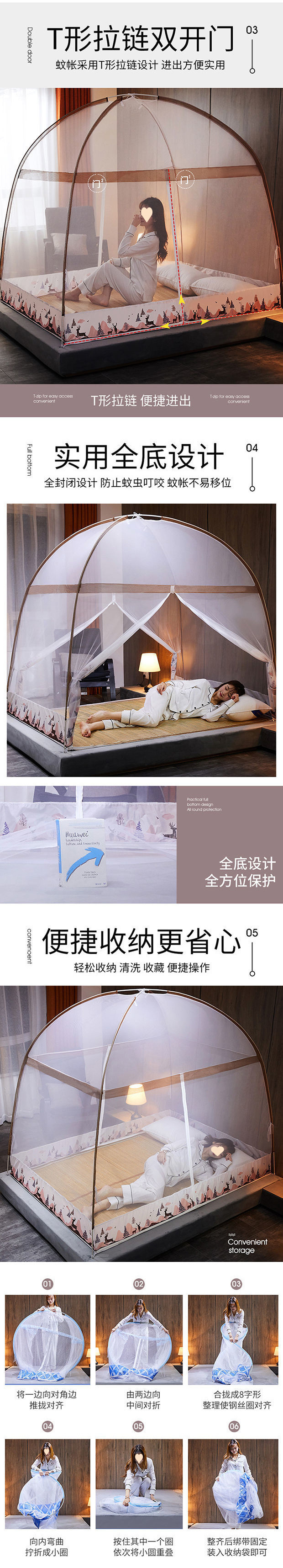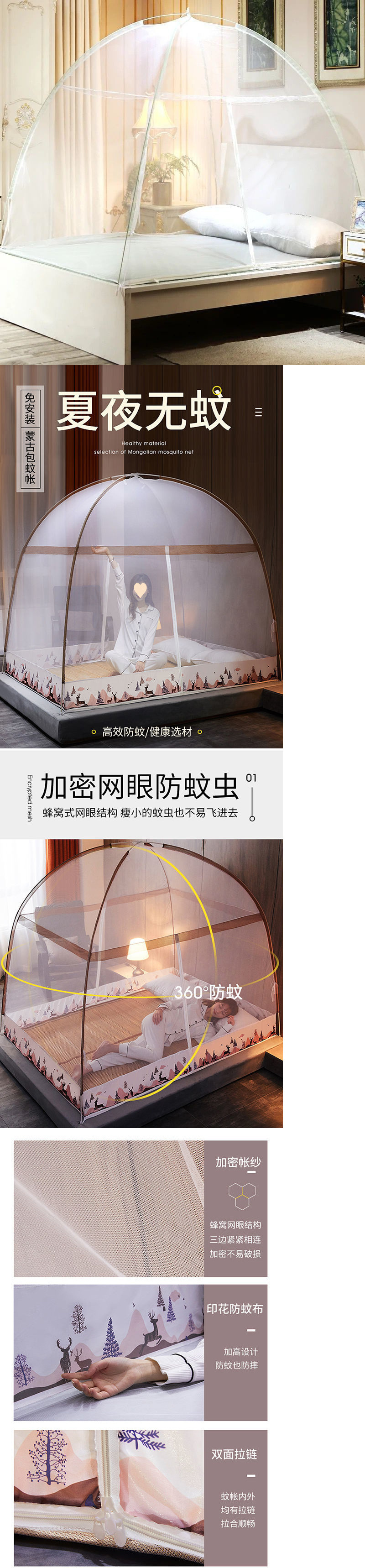 설치가 필요 없는 몽골리안 돔 모기장 가정용 1. 51.8m 침대 학생 1.2m 텐트 싱글 1.0