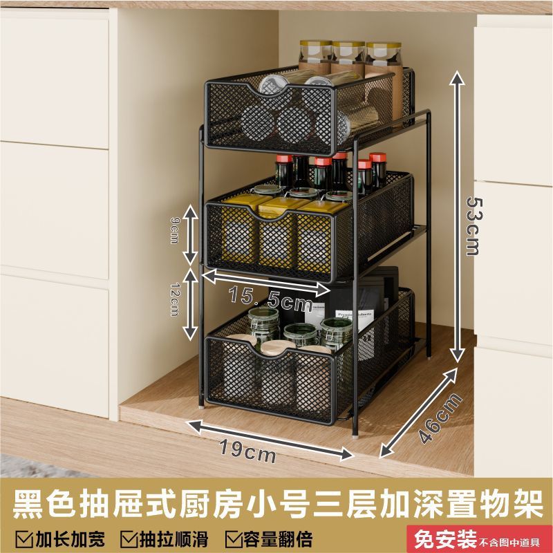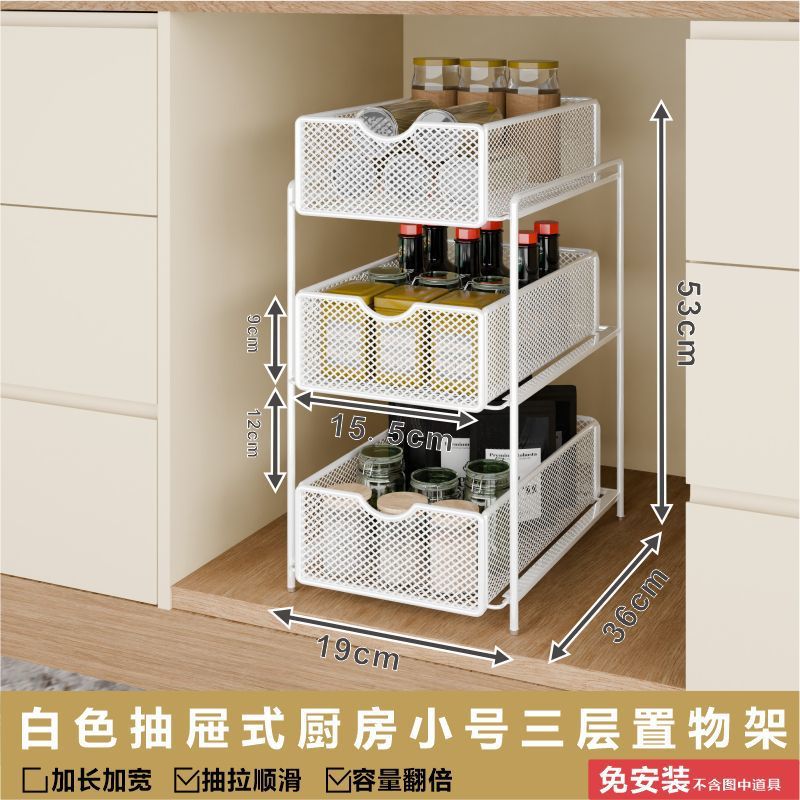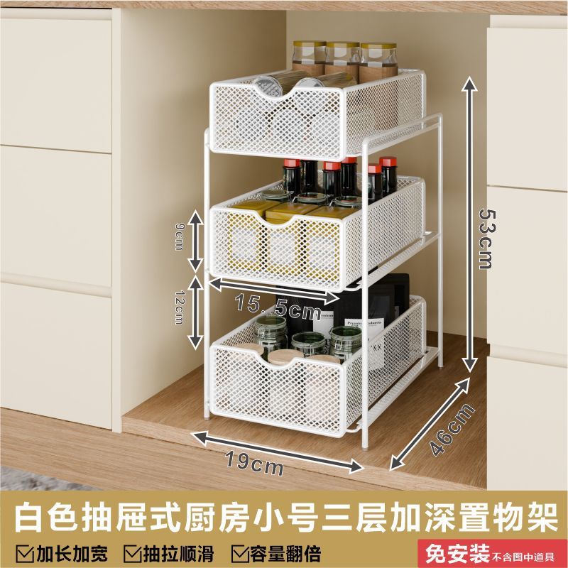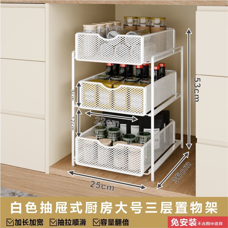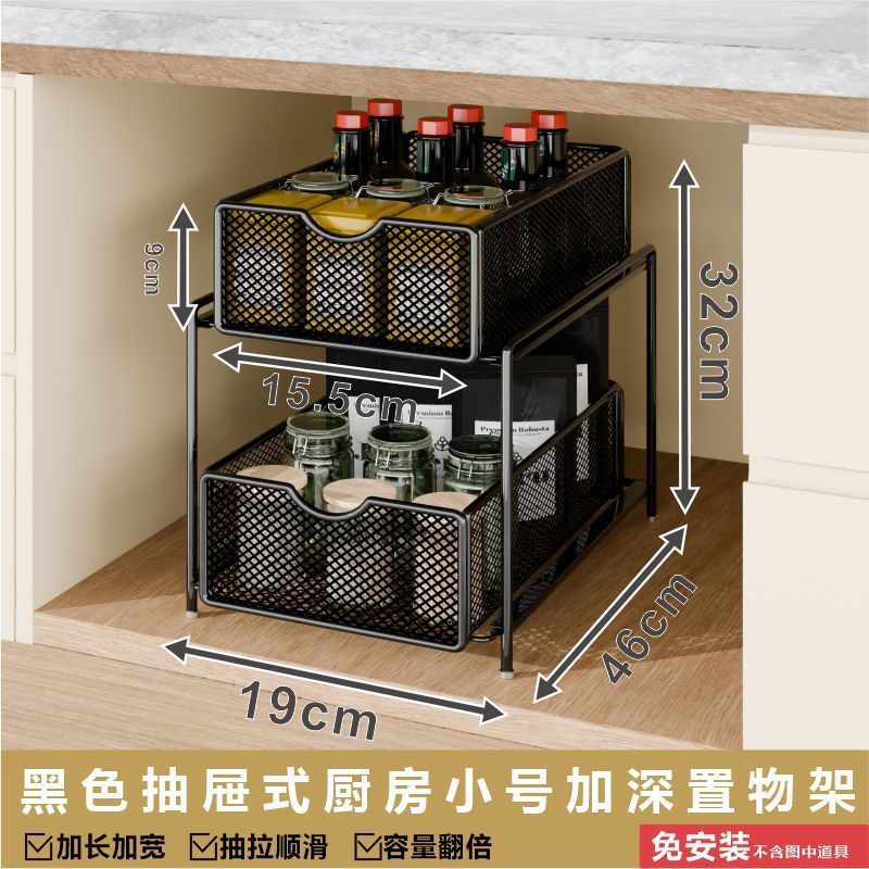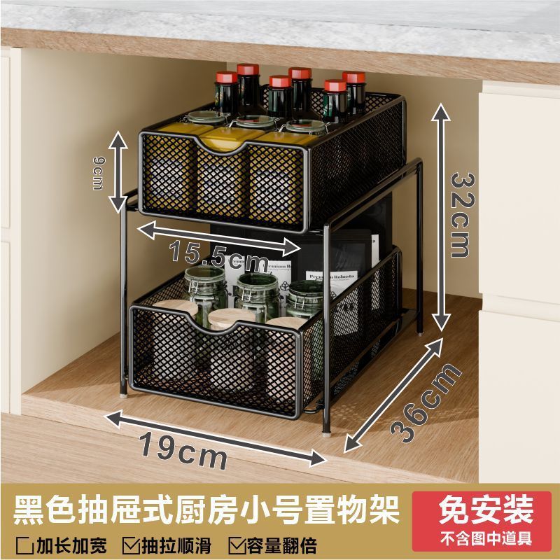 싱크대 아래 캐비닛에 있는 새로운 다층 펀치 없는 풀아웃 수납 선반, 더블 레이어 바구니스토어 가기