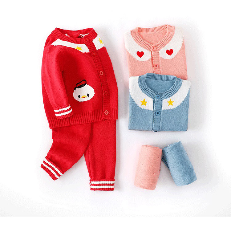아기 스웨터 니트웨어 세트 봄 가을 겨울 아기 이너웨어 코트 어린이 옷 만화 패턴