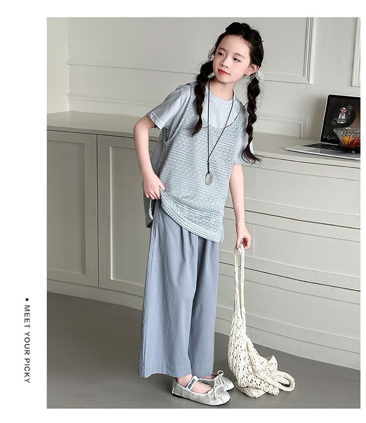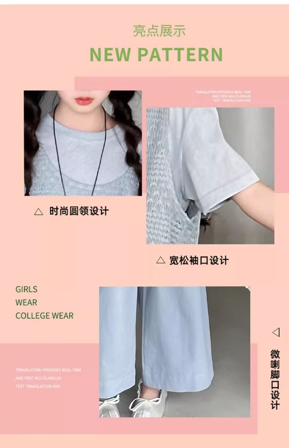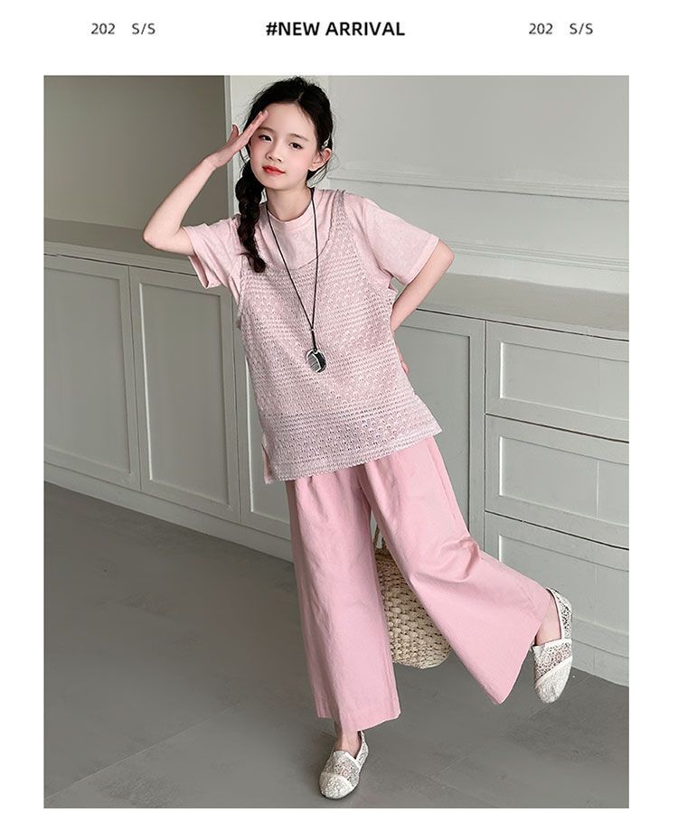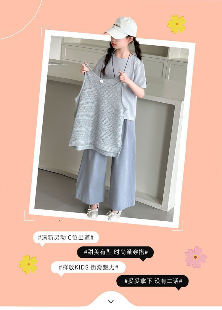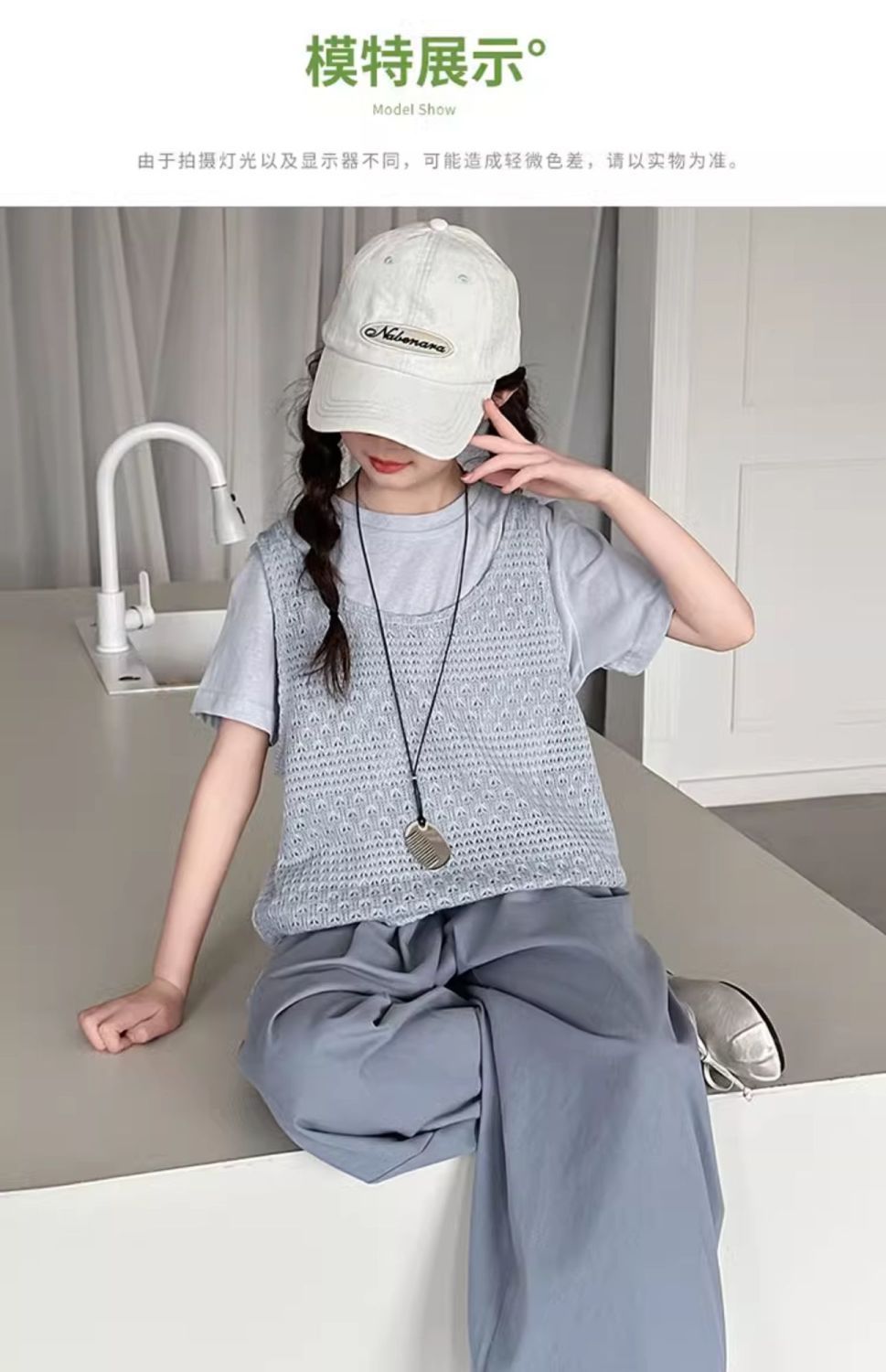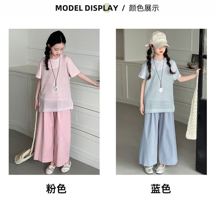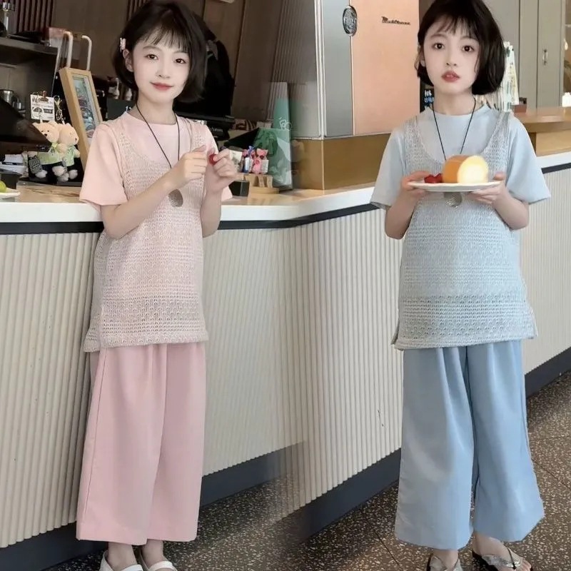 여아 여름 정장 2025 새로운 스타일 중대형 아동용 중공 조끼 한국 스타일 얇은 5부 소매 투피스스토어 가기
