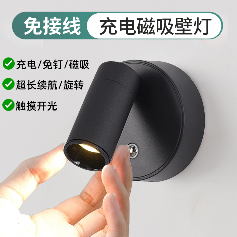 배선이 필요 없는 충전식 다운라이트, 무선 자석 스포트라이트, 야간 조명, 펀치 없는 침실 침대 옆 독서등, 벽걸이 조명