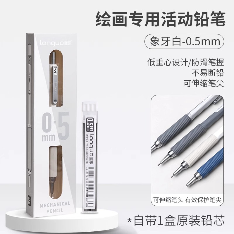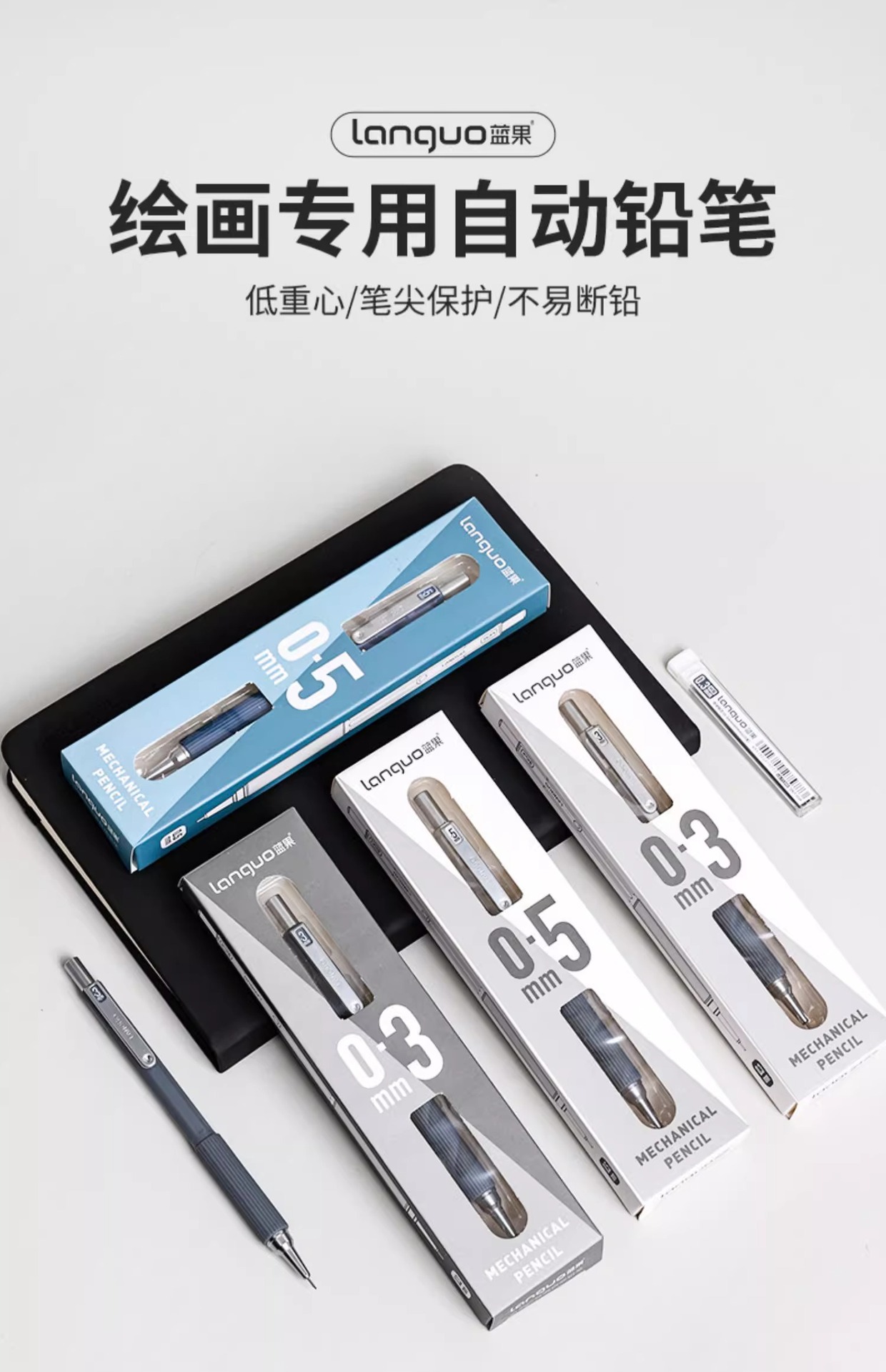 Languo 페인팅 자동 연필 0.3/0.5/0.7 깨지기 쉽지 않은 코어 깨지기 방지 금속 저중심 자동 연필스토어 가기