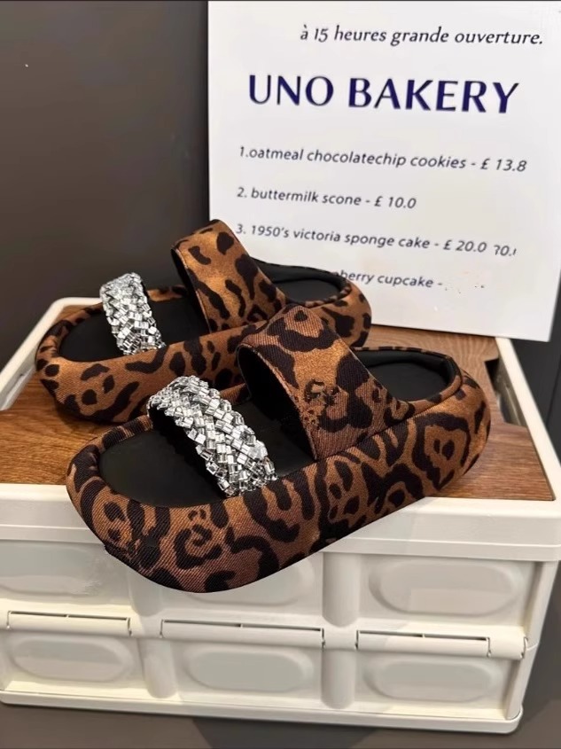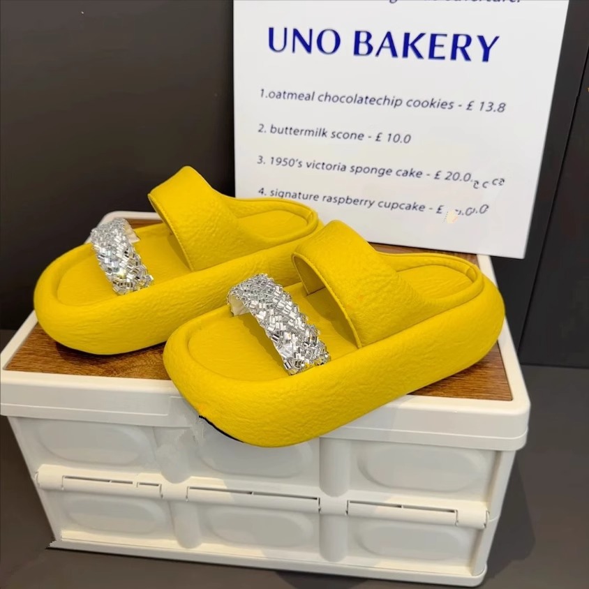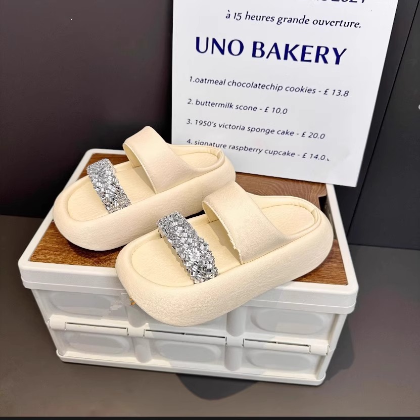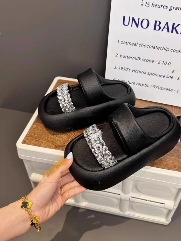 여성을 위한 유럽 스타 스타일 라인스톤 두꺼운 밑창 슬리퍼 2025 여름 새로운 스타일 키가 큰 겉옷 다용도 샌들 슬리퍼스토어 가기