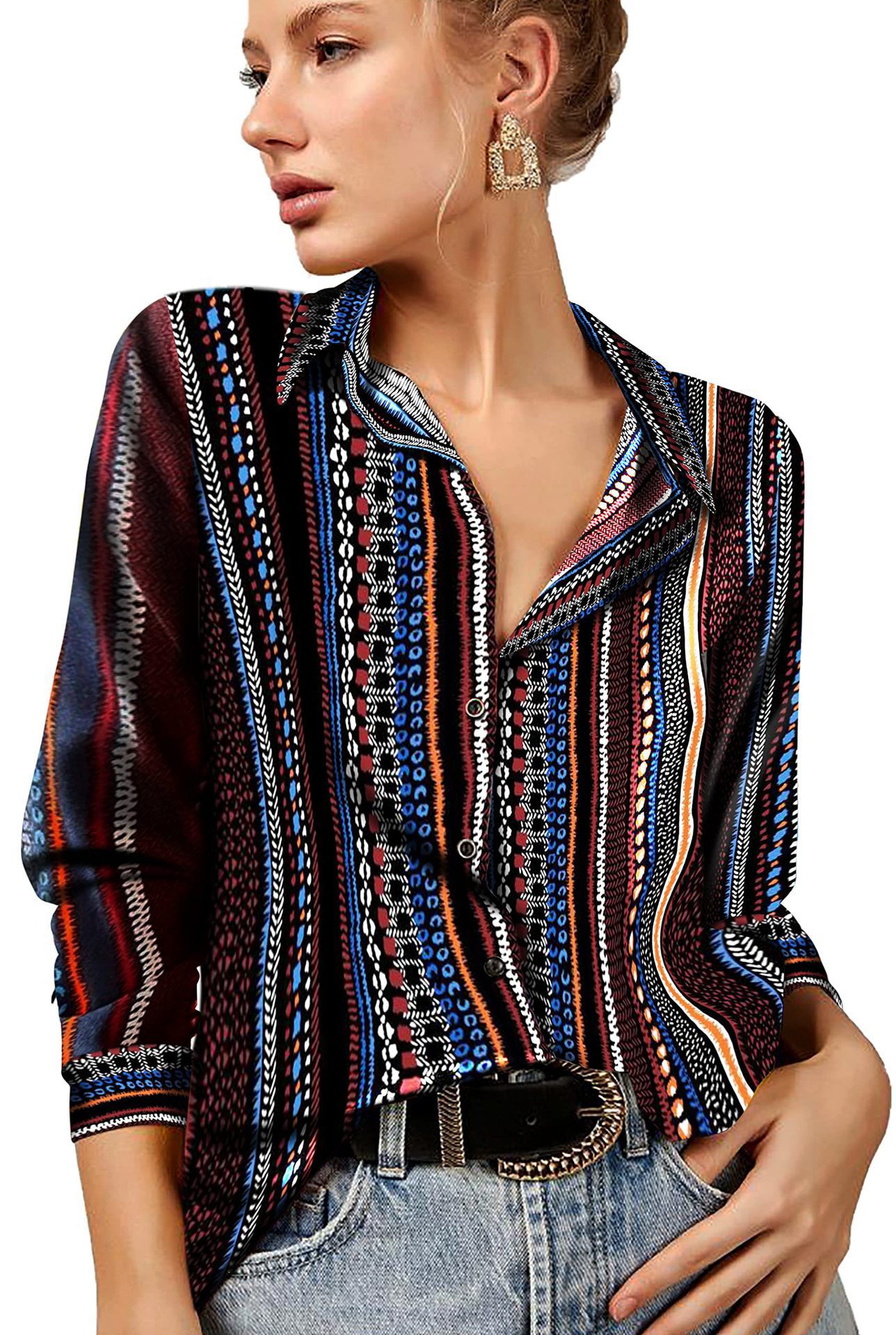 국경 간 2025 새로운 Amazon 유럽과 미국 패션 캐주얼 다목적 복고풍 여성 긴팔 셔츠 HD 인쇄