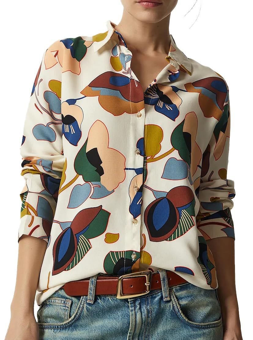 국경 간 2025 새로운 Amazon 유럽과 미국 패션 캐주얼 다목적 복고풍 여성 긴팔 셔츠 HD 인쇄스토어 가기