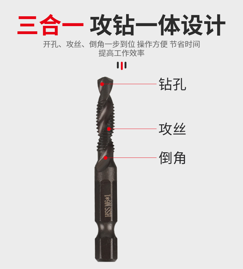 육각 핸들 복합 탭, 다기능 드릴링 및 태핑 올인원 기계 탭 도구 세트, 맞춤형 나선형 탭