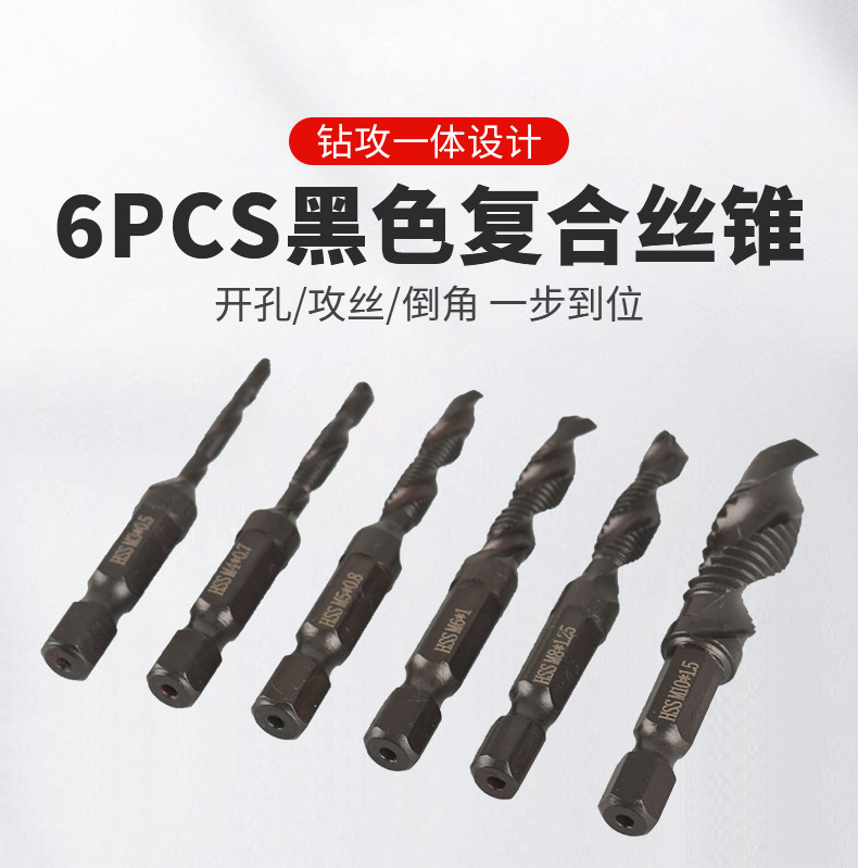 육각 핸들 복합 탭, 다기능 드릴링 및 태핑 올인원 기계 탭 도구 세트, 맞춤형 나선형 탭스토어 가기