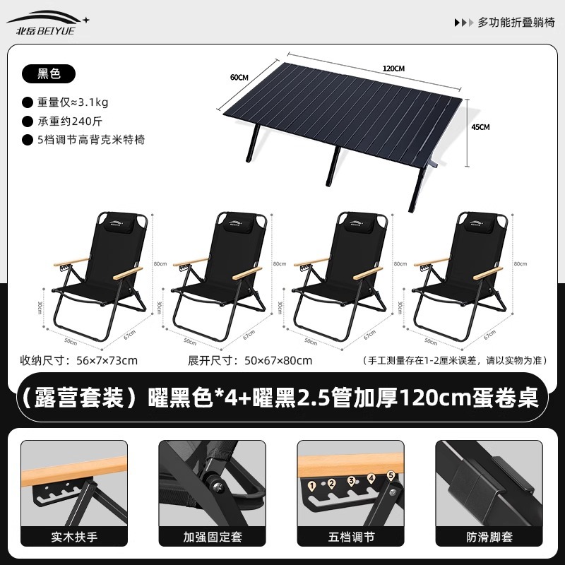 • (캠핑세트) 흑요석 블랙*4+흑요석 블랙 2.5 튜브 두꺼운 120cm 에그롤 테이블