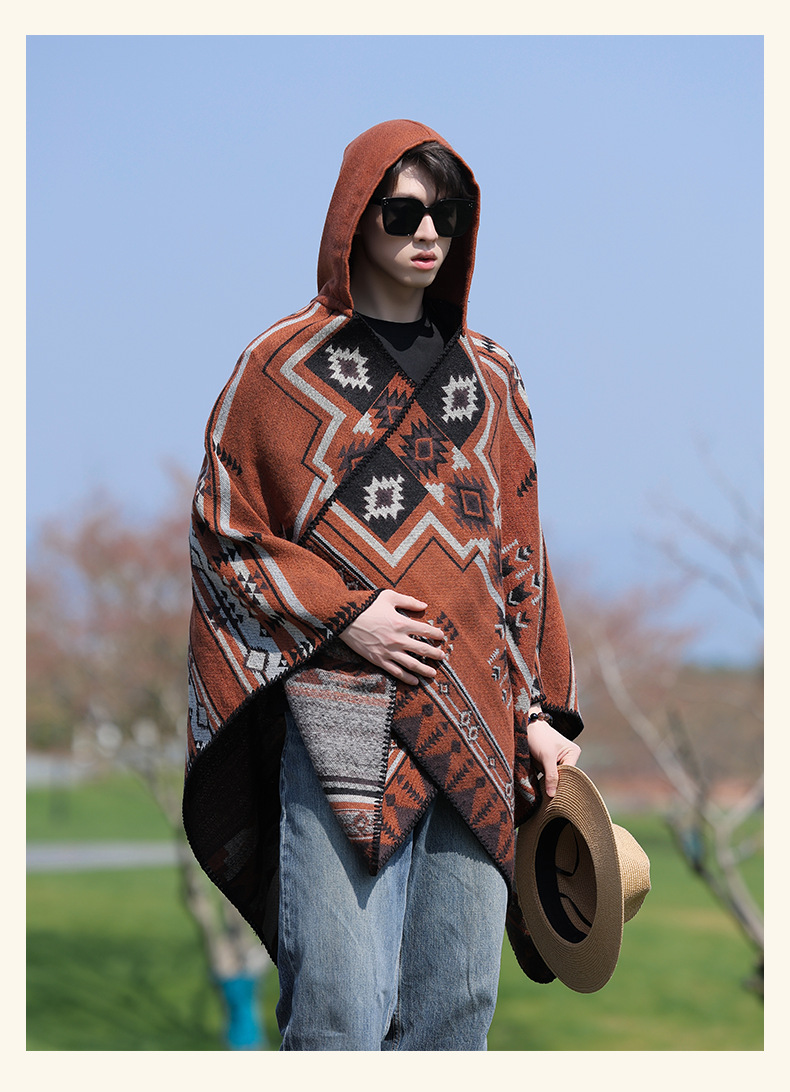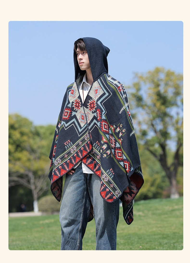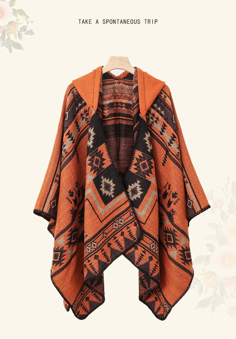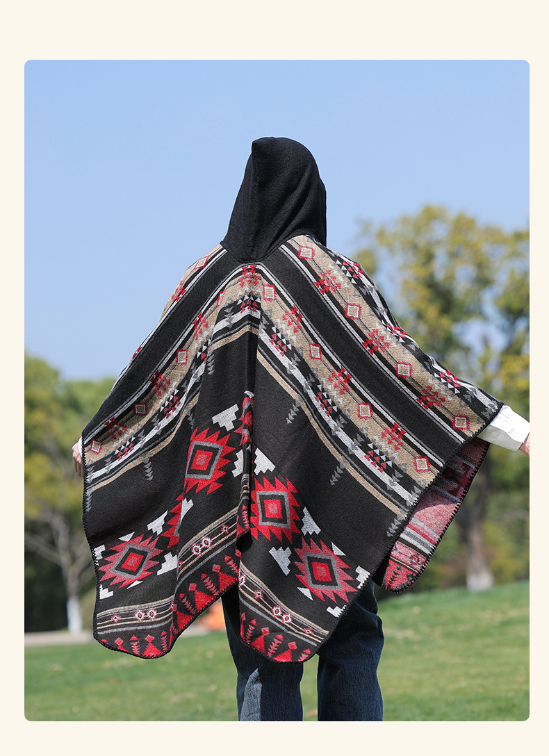 민족 스타일의 운남 니트 복고풍 망토 코트, 패셔너블하고 고급스러운 풀오버 스타일의 숄 망토