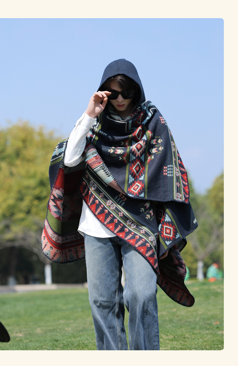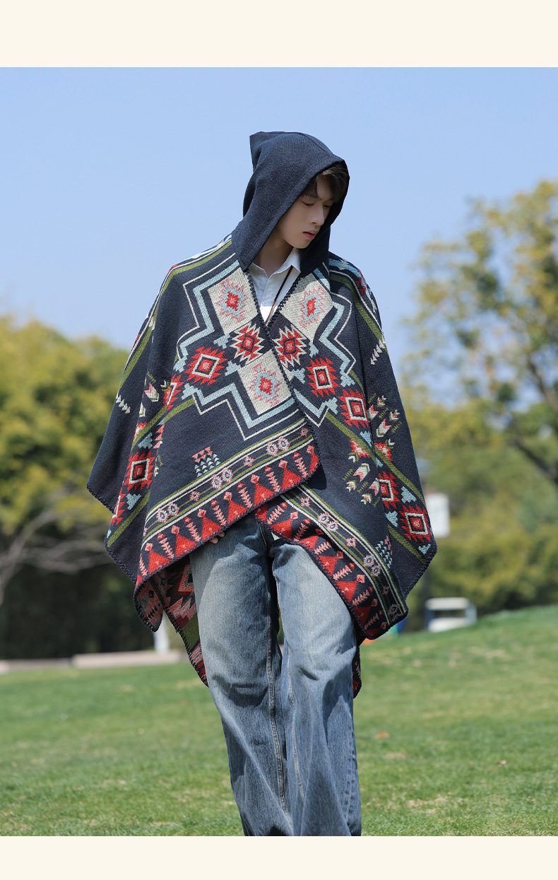 민족 스타일의 운남 니트 복고풍 망토 코트, 패셔너블하고 고급스러운 풀오버 스타일의 숄 망토스토어 가기