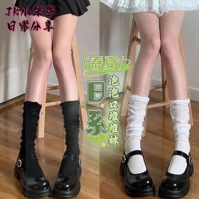 봄 여름 일본식 버블 입 통기성 양말 면 양말 여성 종아리 양말 회색 JK 양말 중간 튜브 양말스토어 가기
