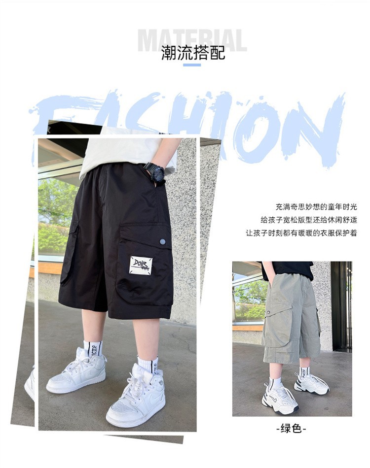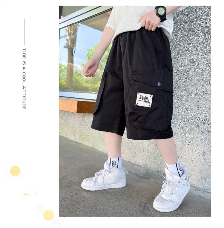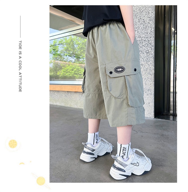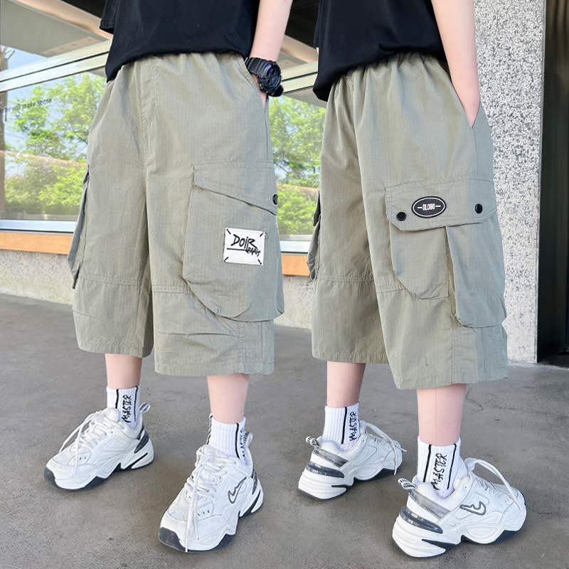 남아 작업복 순면 크롭 팬츠 반바지 신상 아동 중대형 아동 중간 길이 팬츠 남아 여름 얇은 스타일 트렌디