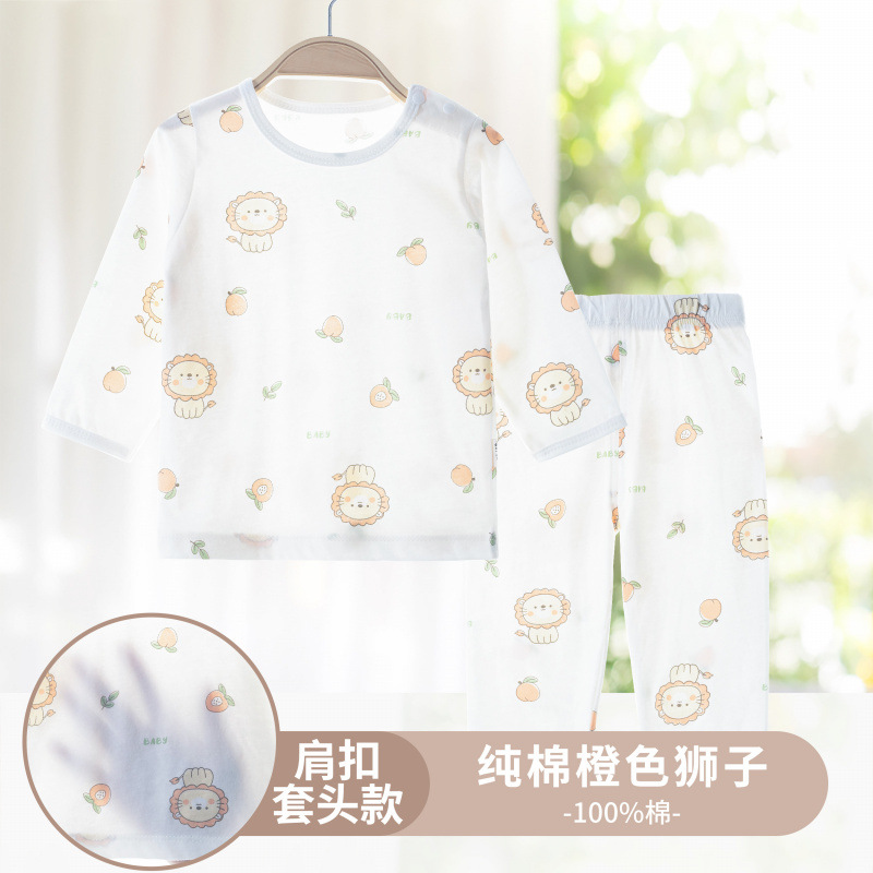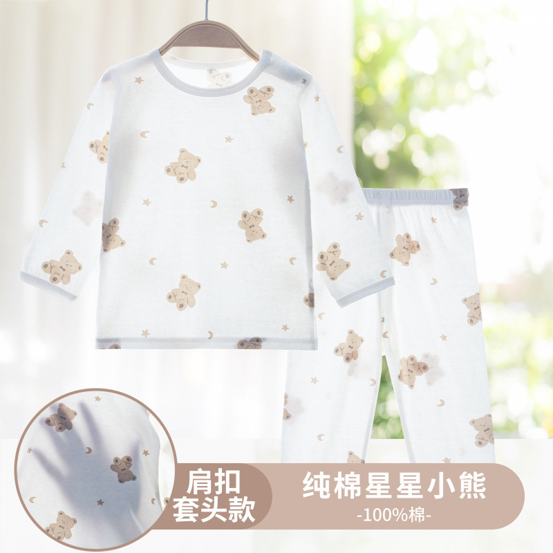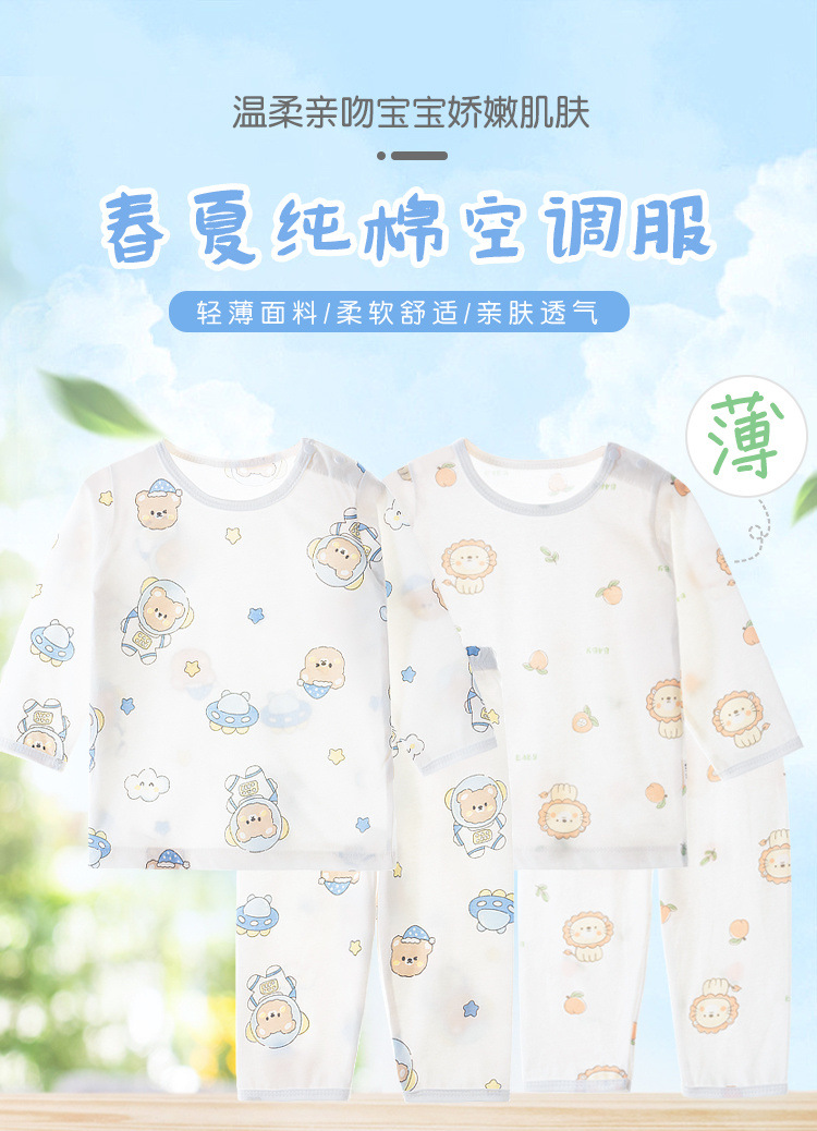어린이 면화 긴팔 얇은 잠옷 봄과 여름 소년과 소녀 에어컨 의류 통기성 아기 정장 속옷 새로운 스타일스토어 가기