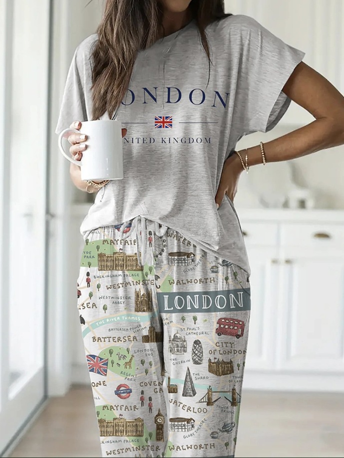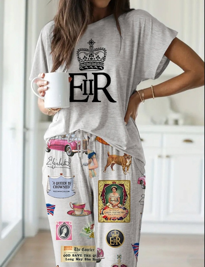 2025년 신상 유럽 및 미국 성인용 프린트 드로스트링 밴딩 반팔 세트 홈웨어 POD 맞춤 제작