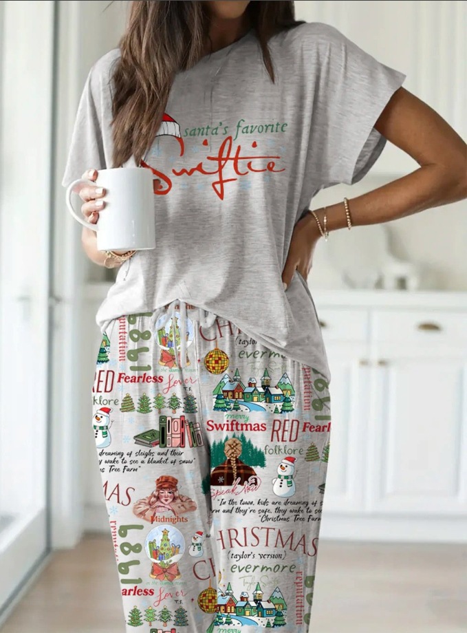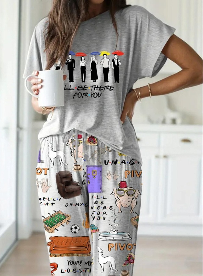 2025년 신상 유럽 및 미국 성인용 프린트 드로스트링 밴딩 반팔 세트 홈웨어 POD 맞춤 제작스토어 가기