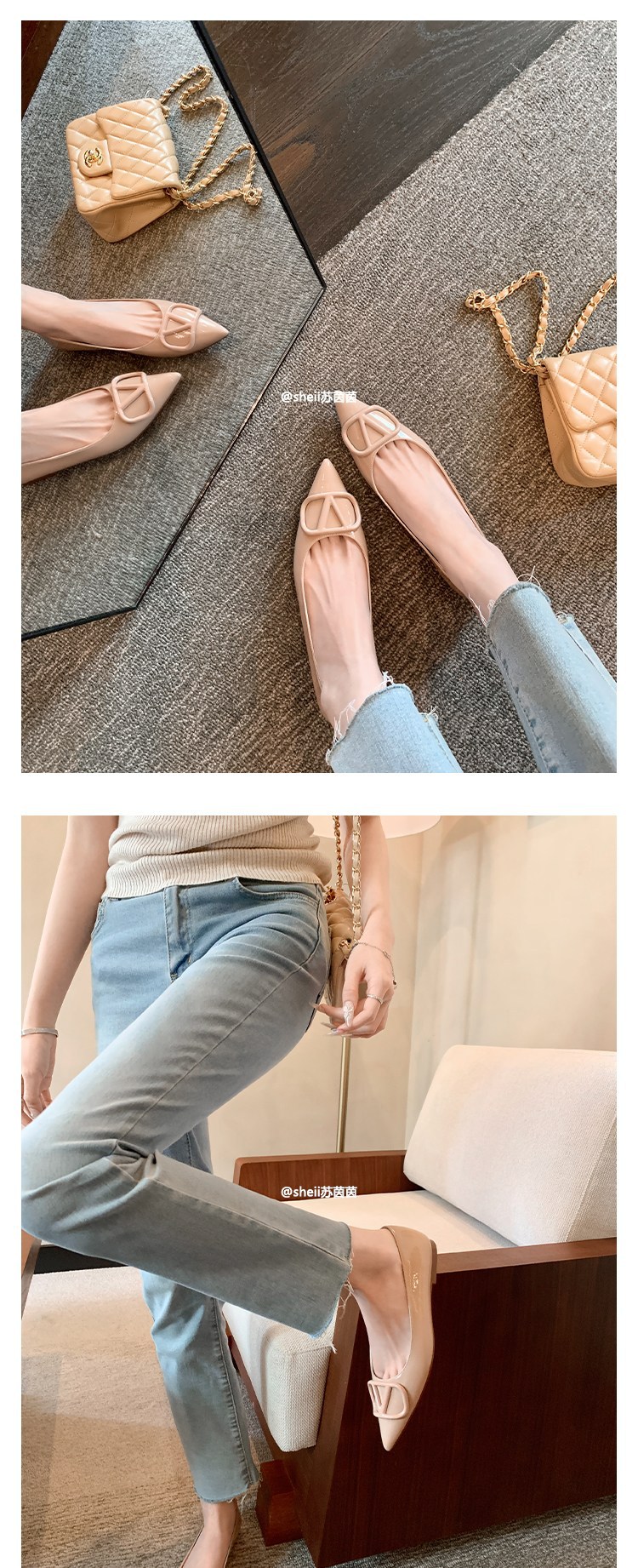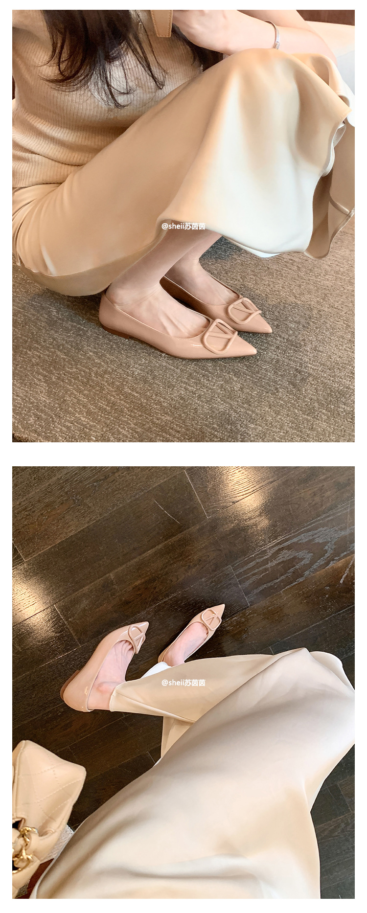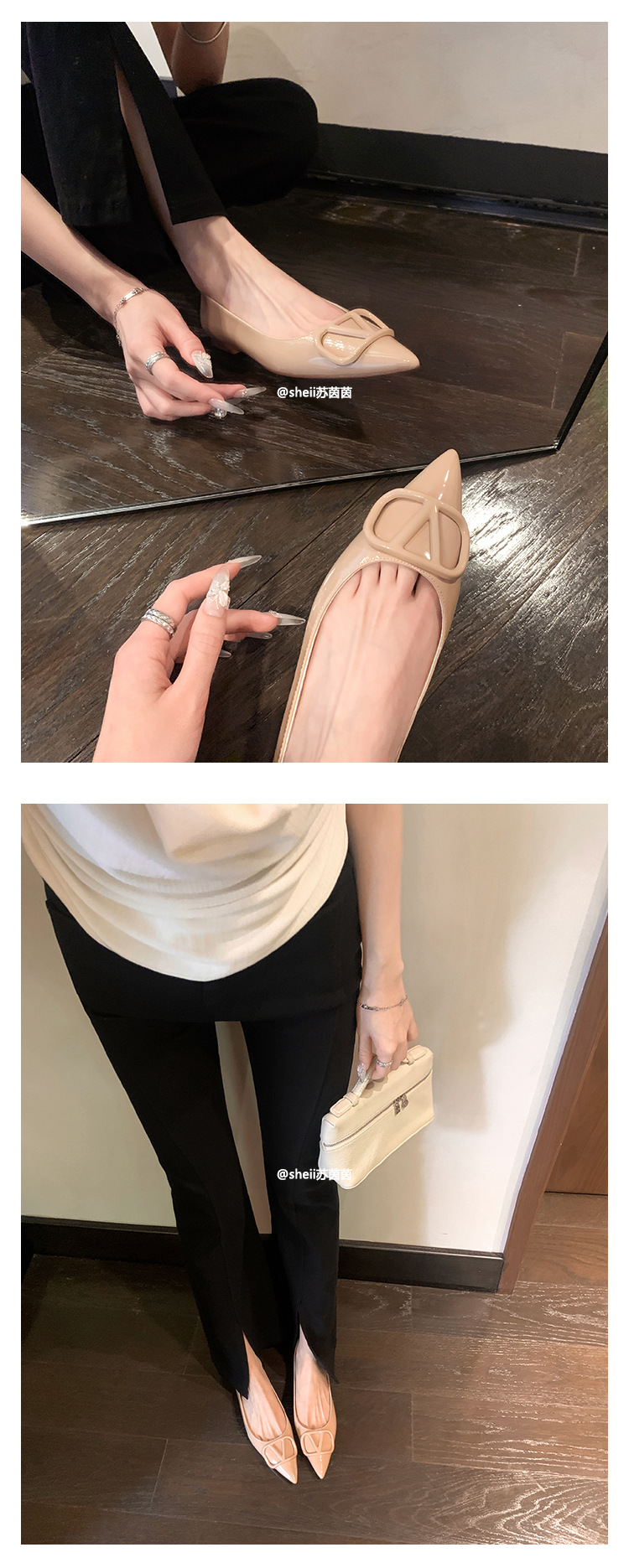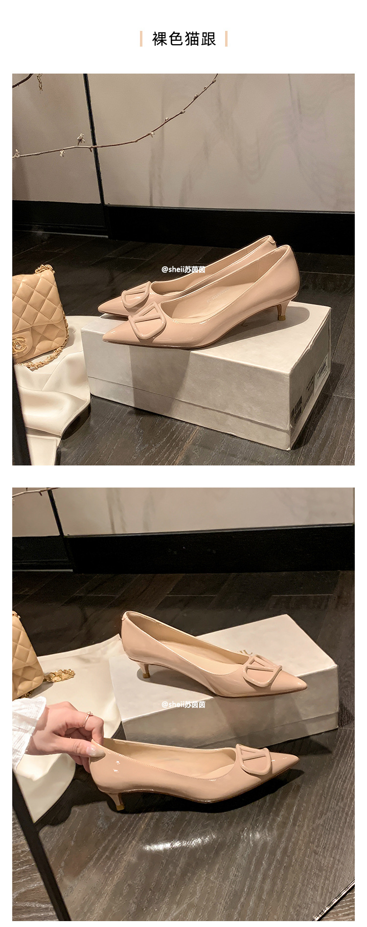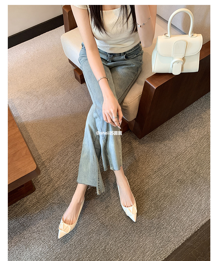 양가죽~수인인 포인티드 토 V버튼 키튼힐 여성용 하이힐 누드 컬러 만능 플랫 슈즈 ol 통근 작업화스토어 가기