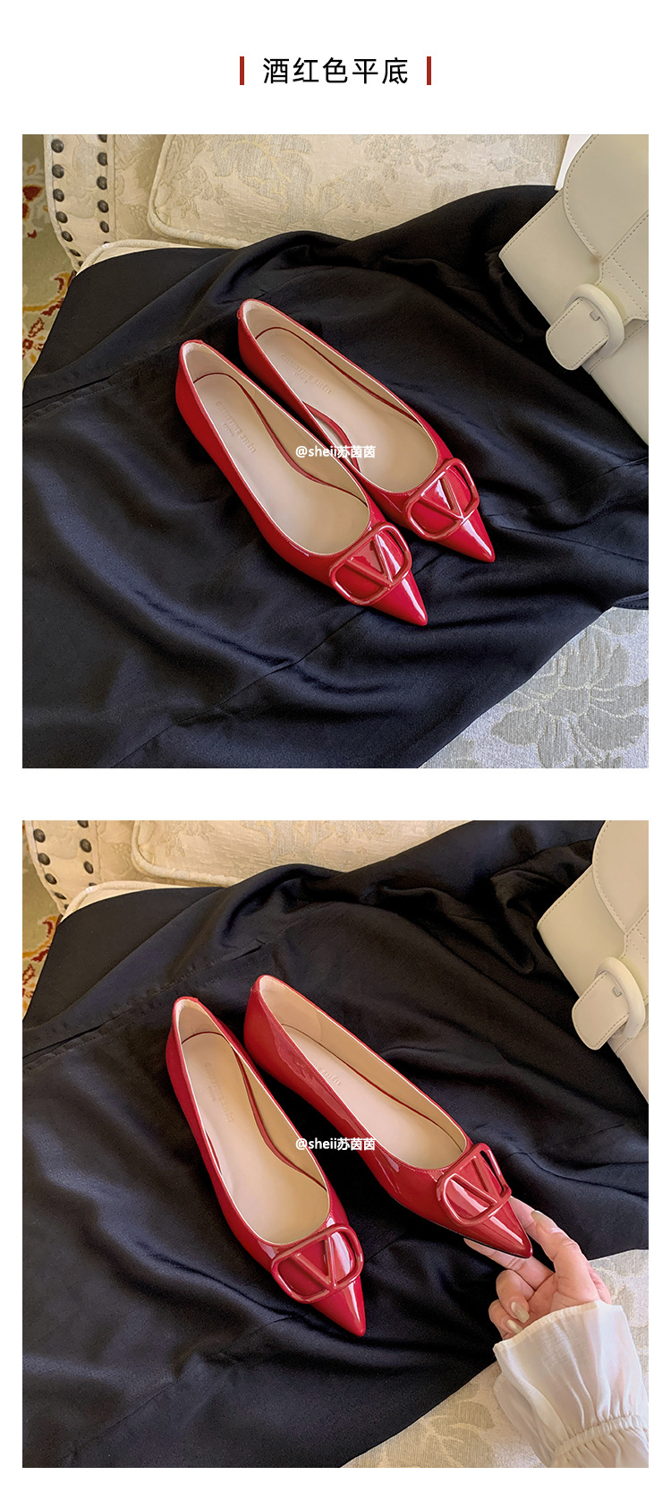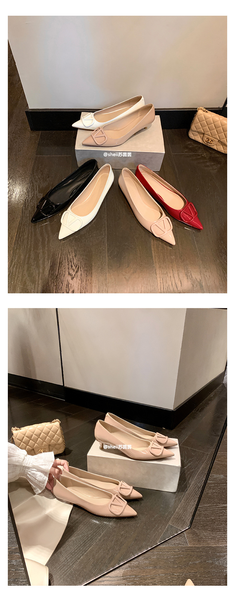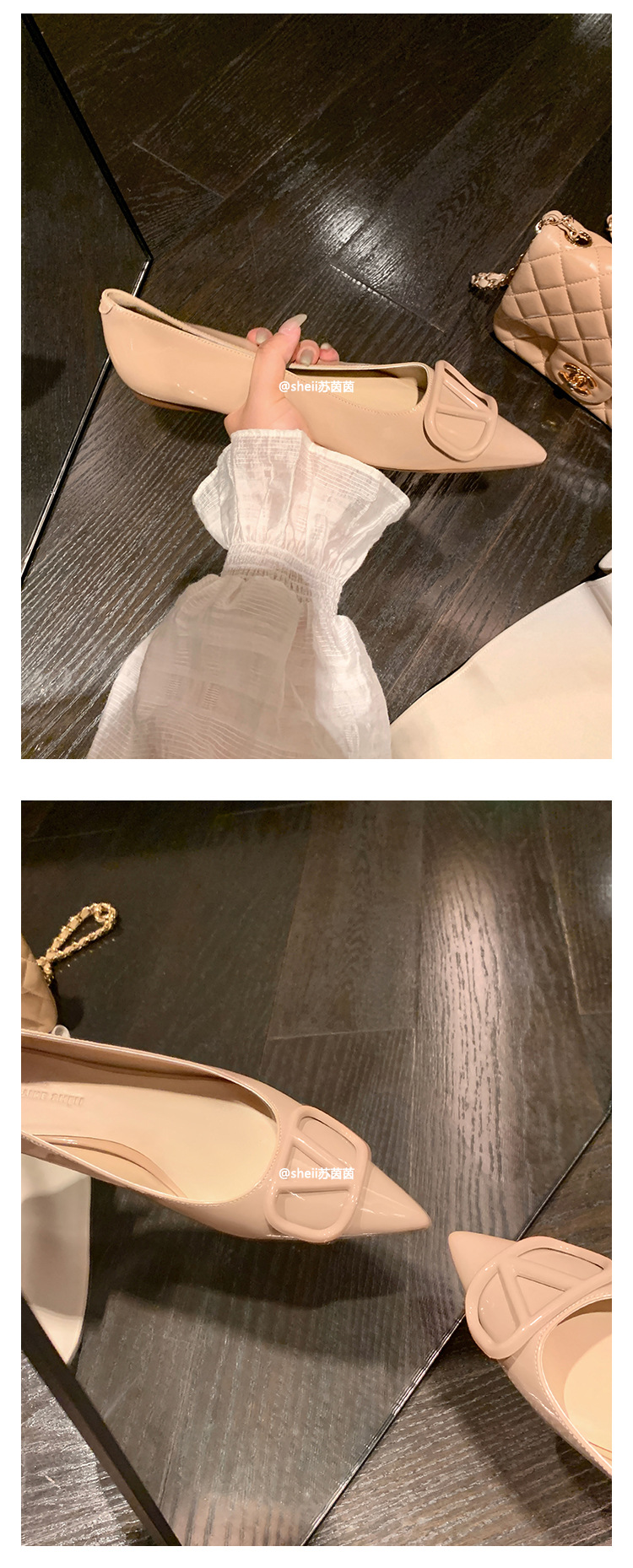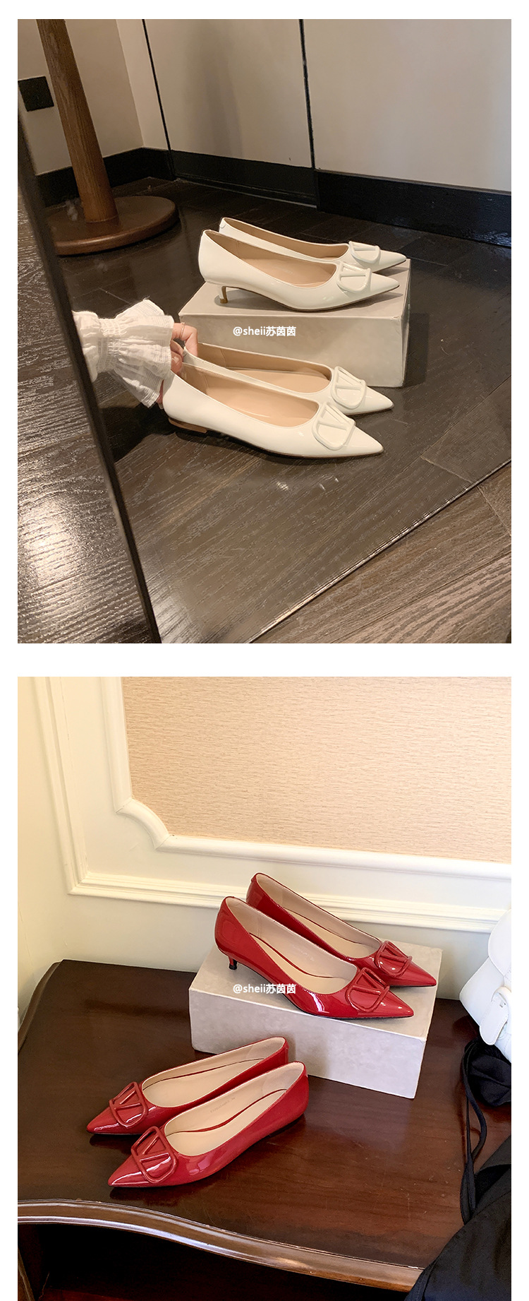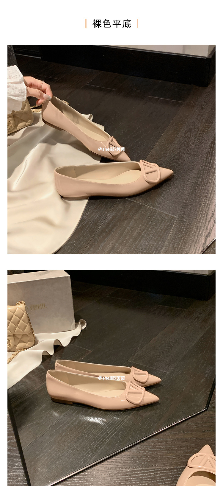 양가죽~수인인 포인티드 토 V버튼 키튼힐 여성용 하이힐 누드 컬러 만능 플랫 슈즈 ol 통근 작업화스토어 가기