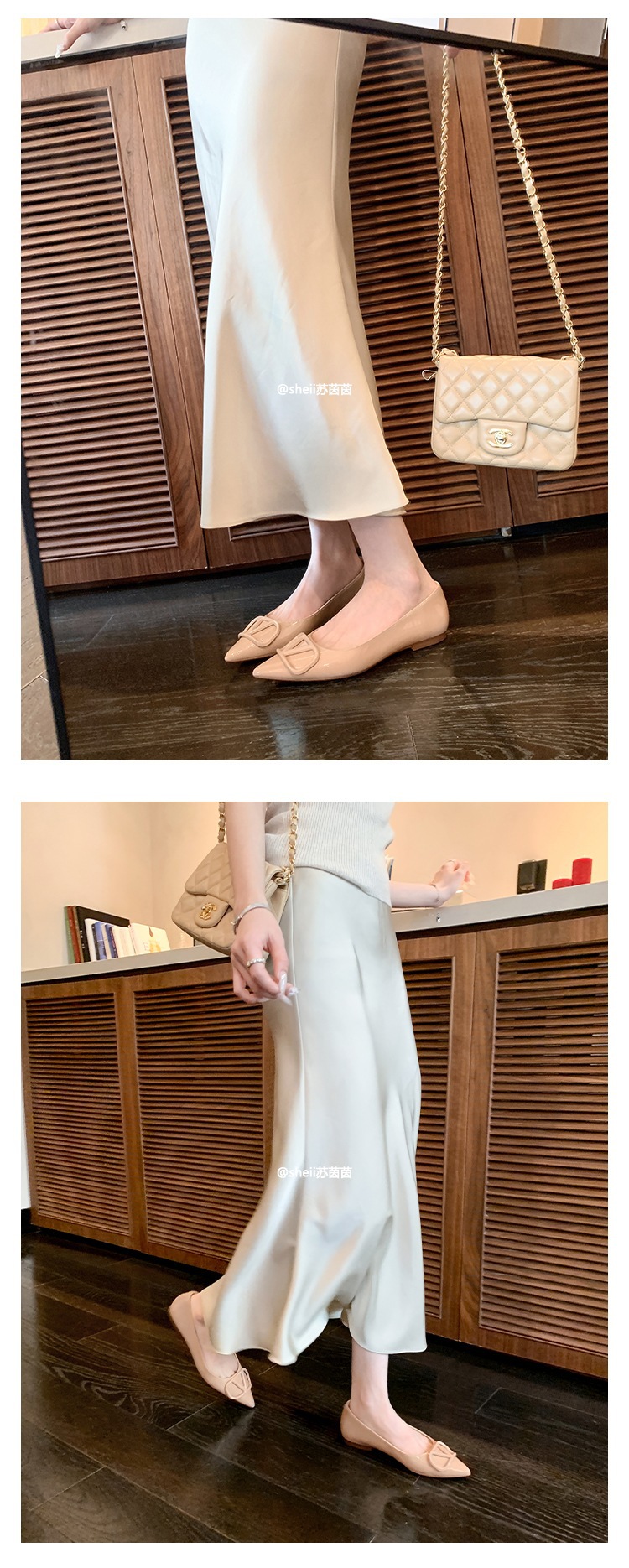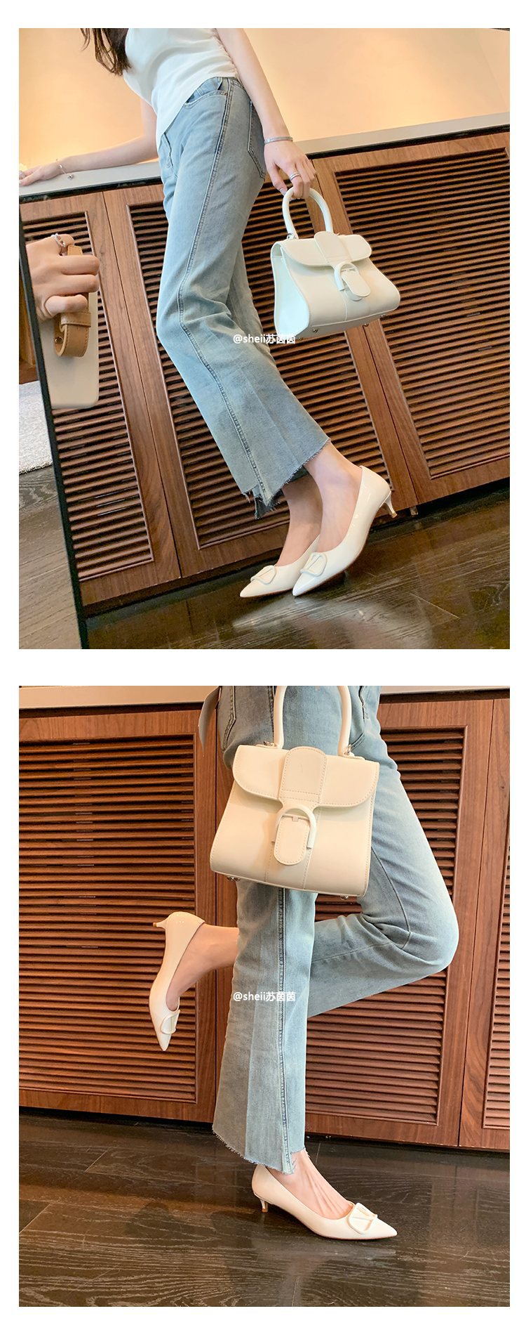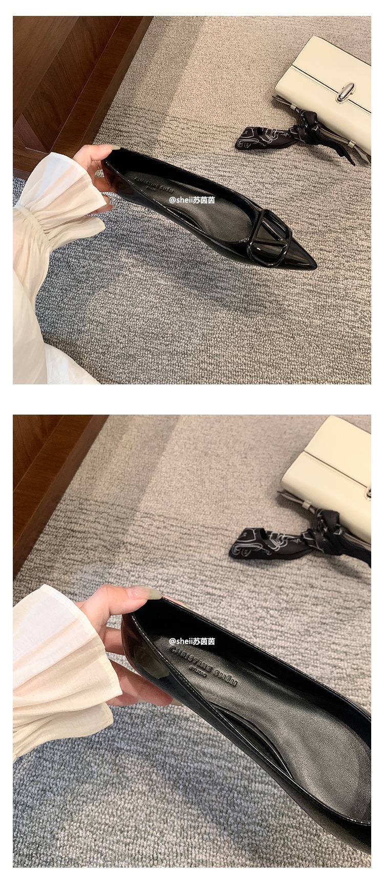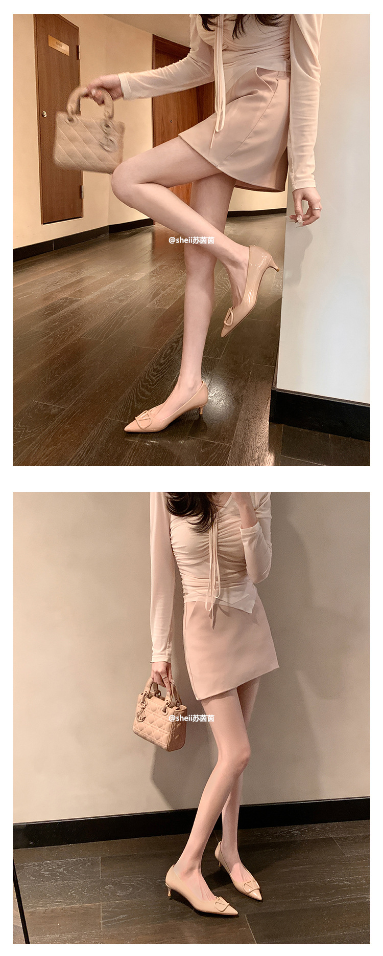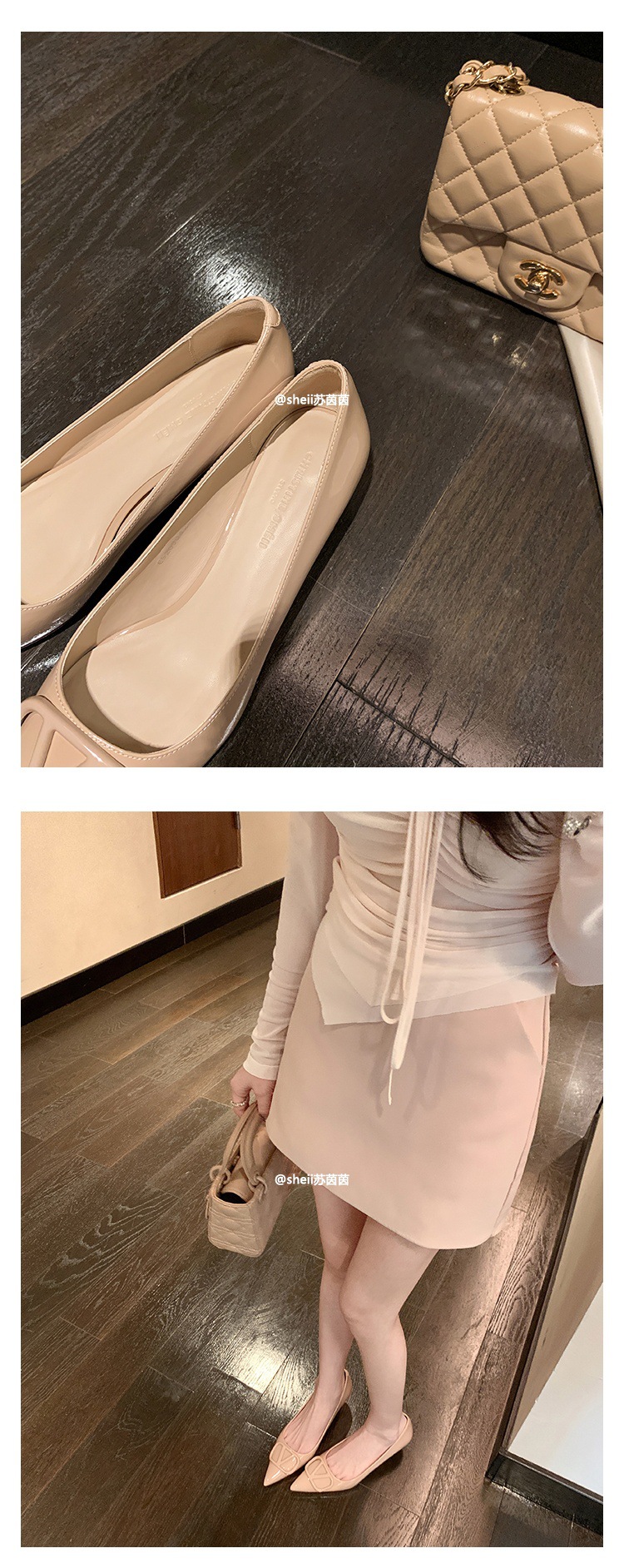 양가죽~수인인 포인티드 토 V버튼 키튼힐 여성용 하이힐 누드 컬러 만능 플랫 슈즈 ol 통근 작업화스토어 가기