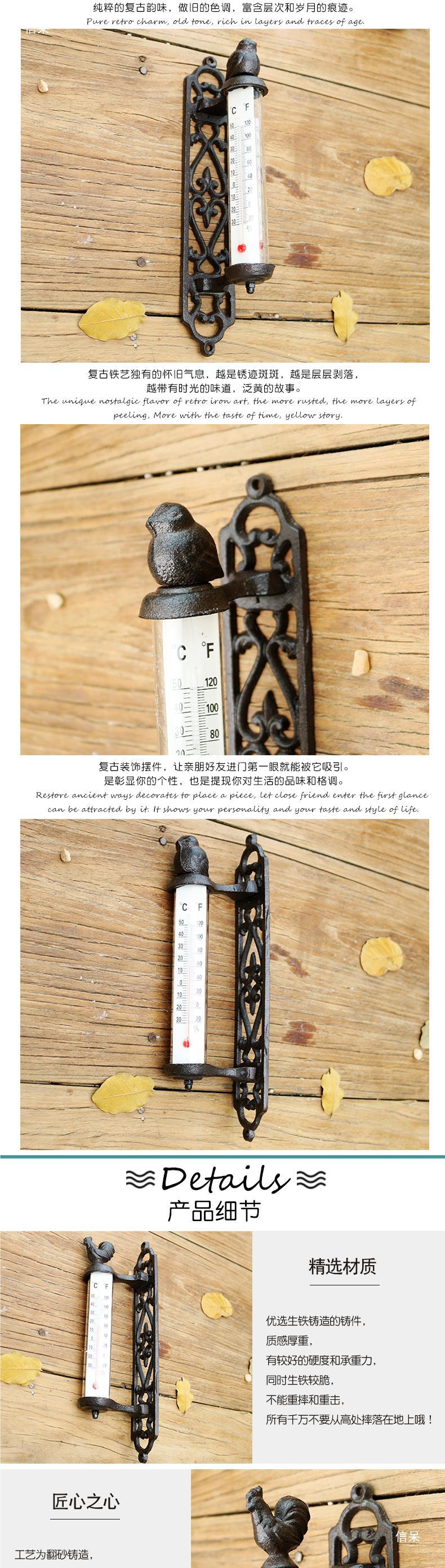 미국 복고풍 철 벽걸이 온도계 홈 벽 장식 매일 사용 온도계 실내 및 실외 구식 온도계