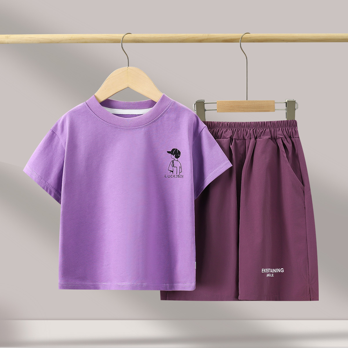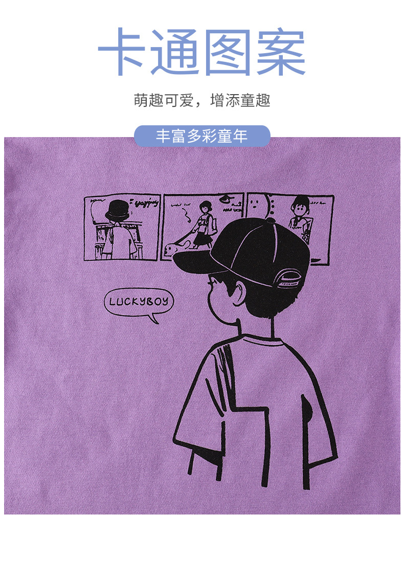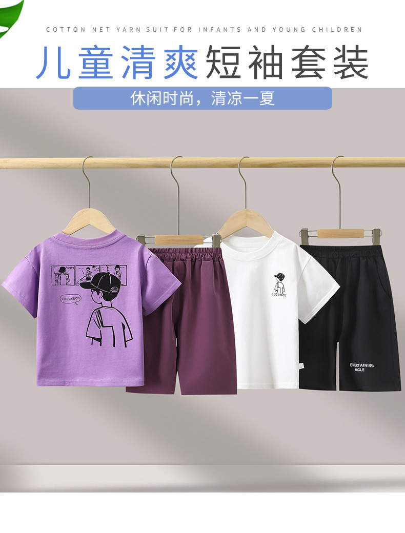 소년 반팔 정장 여름 티셔츠 2025 새로운 느슨한 만화 어린이 반바지 잘 생긴 유행 탑 아동 의류스토어 가기