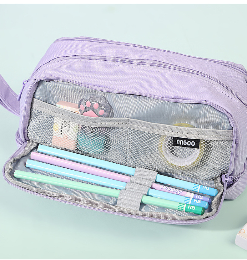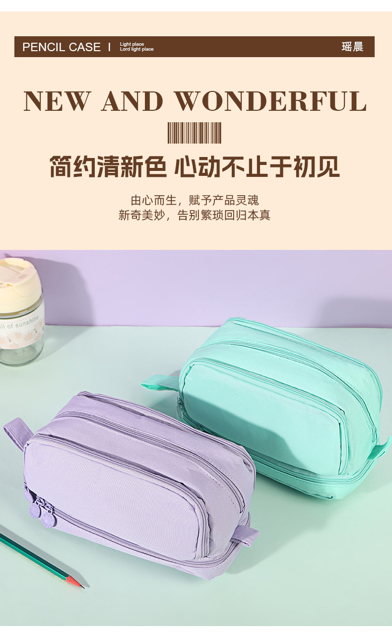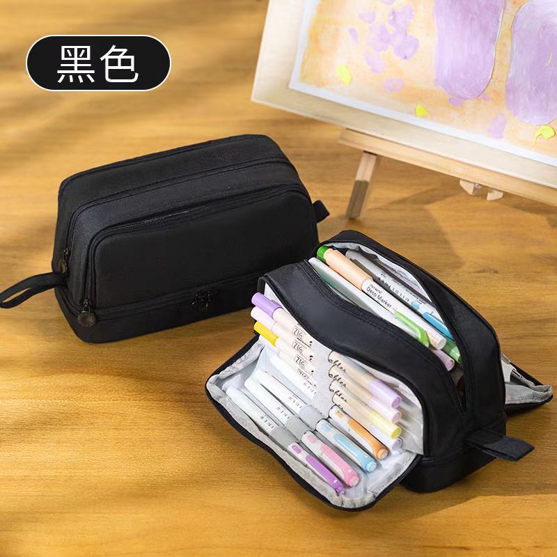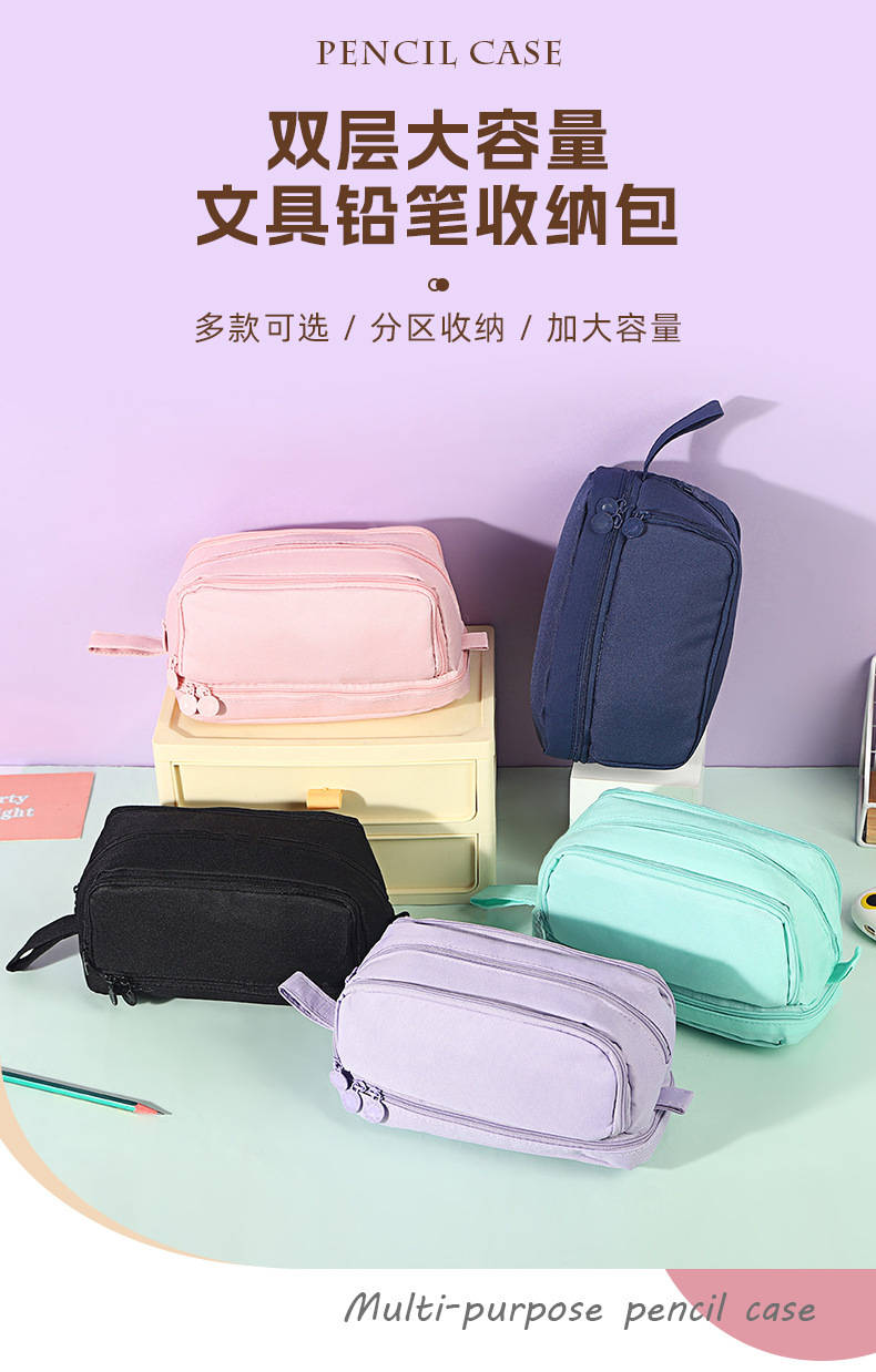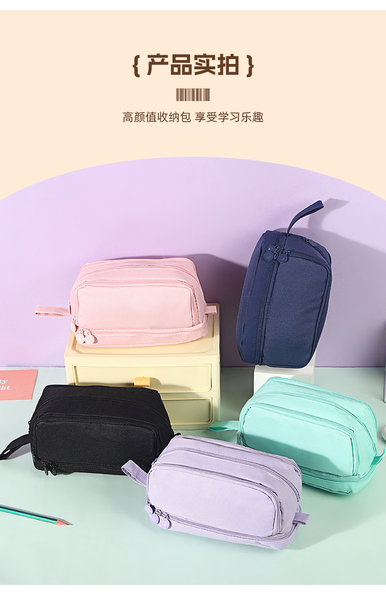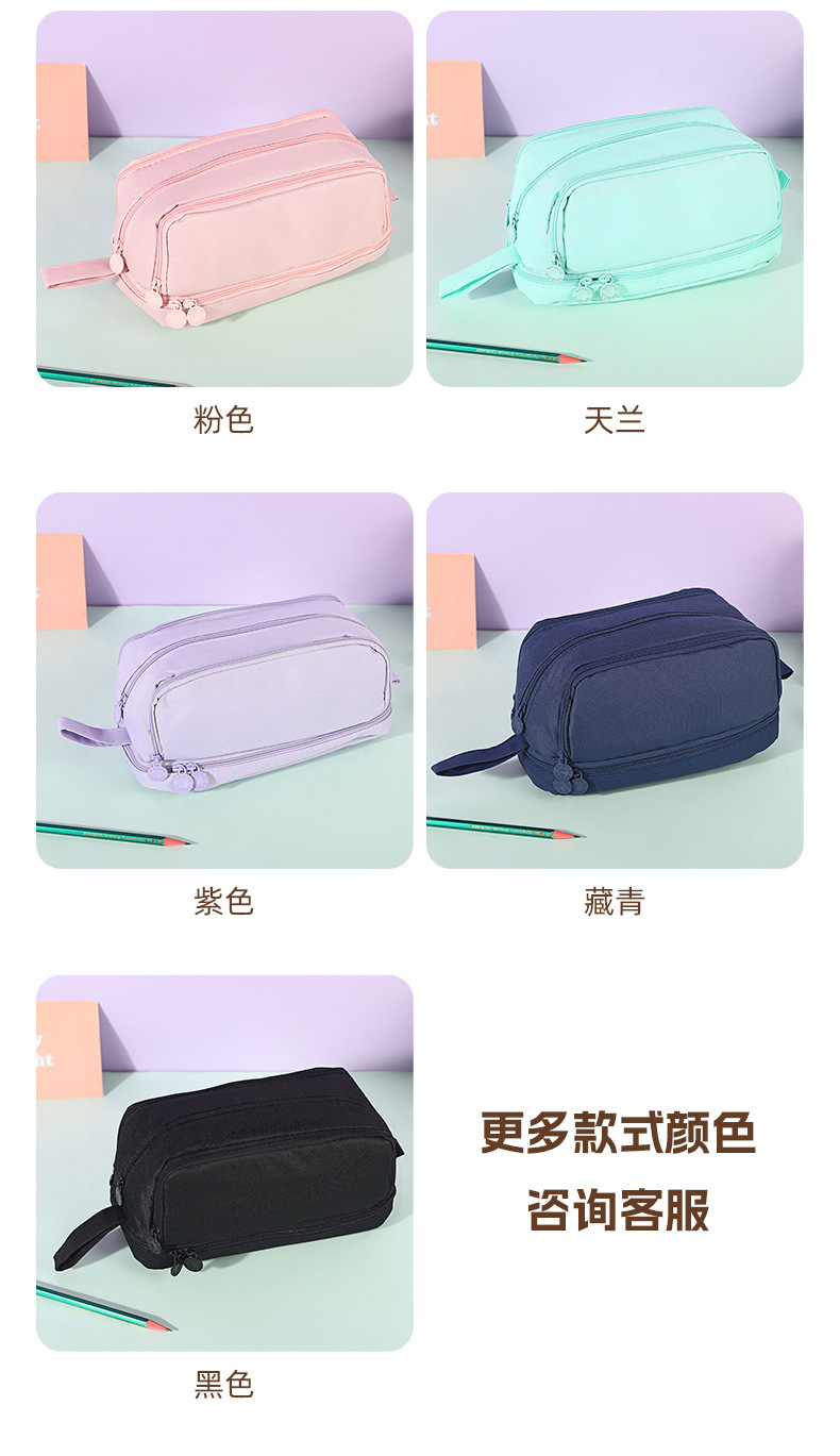 이중창 필통, 단색, 심플, 다기능, 대용량 수납가방, 초등학생 얼룩 방지 문구 수납가방
