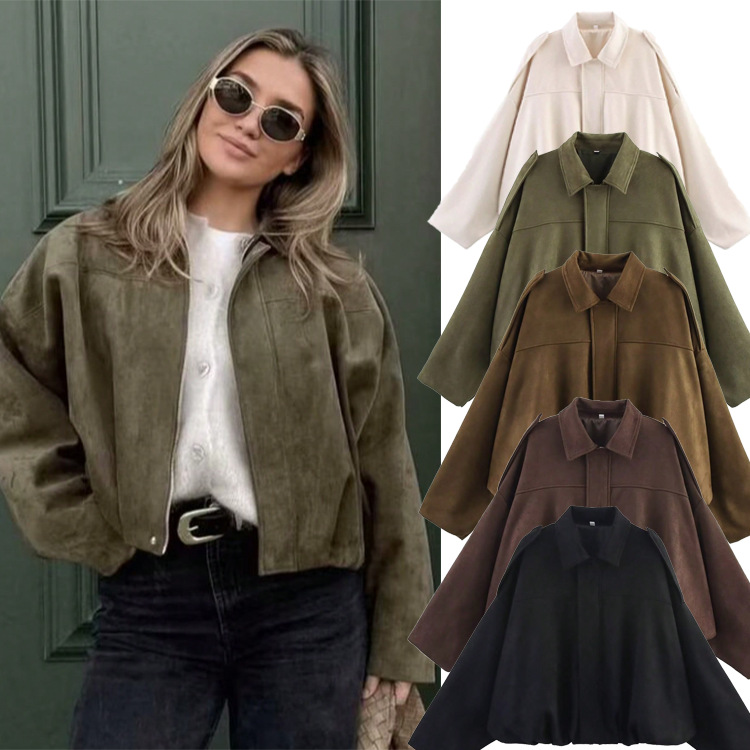 아마존 봄 신상 유럽풍 캐주얼 만능 여성용 스웨이드 질감 라펠 파일럿 재킷