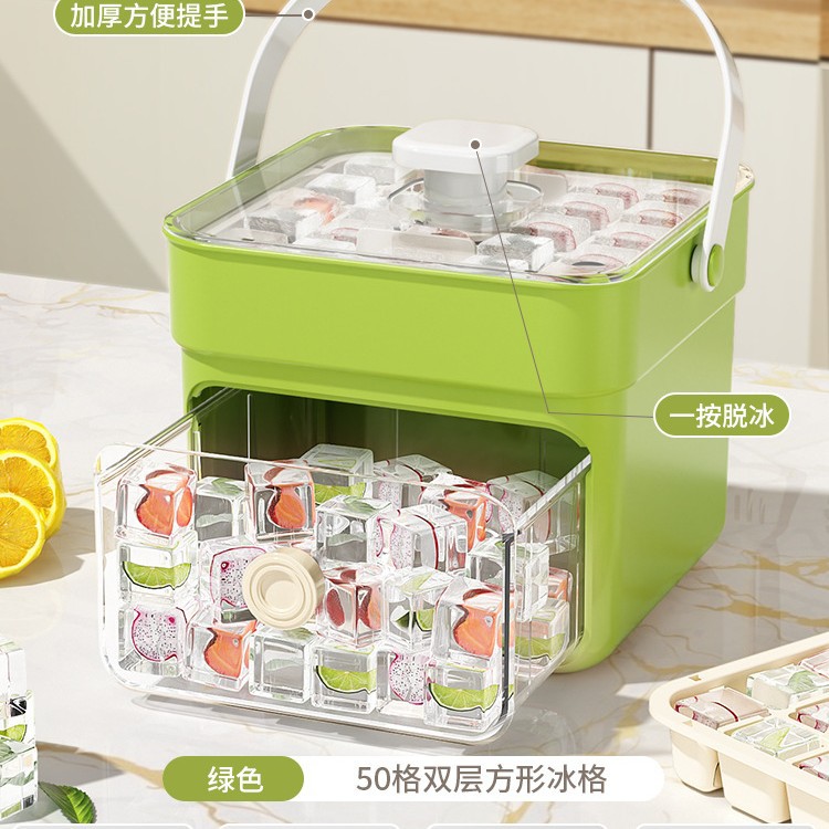 • 2025년형 휴대용 아이스 버킷 - 2단 50구 (녹색) [1초 제빙, 식품 등급]